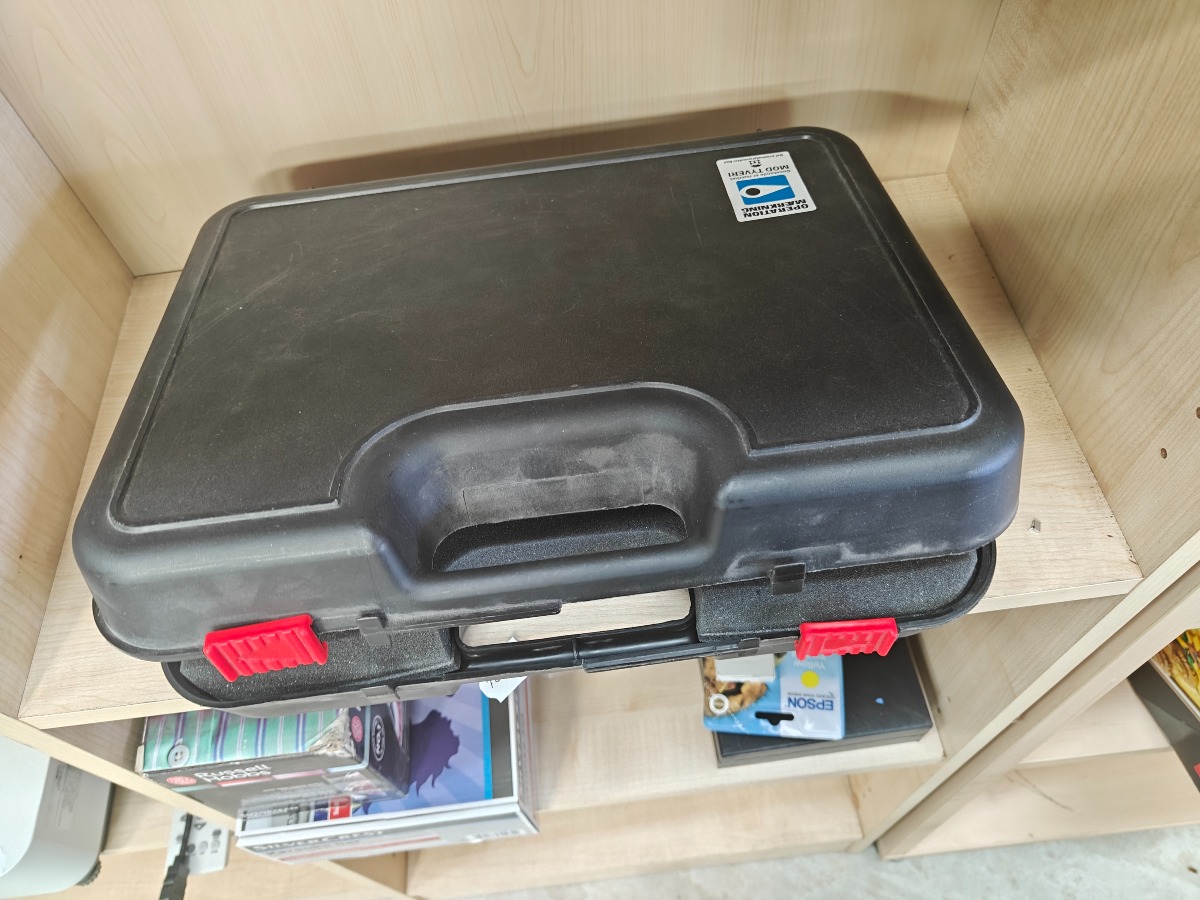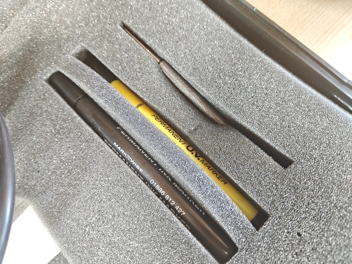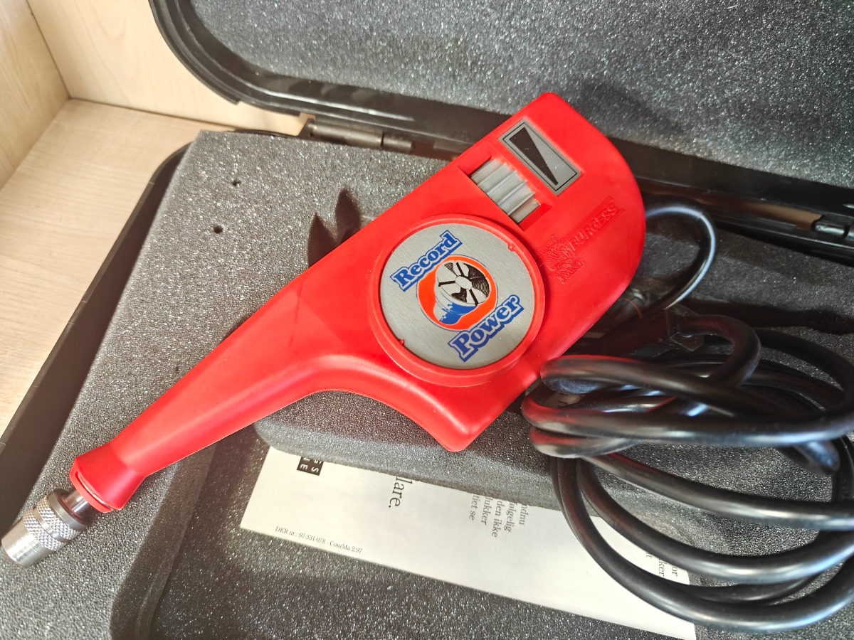 Elektrisk gravørpen med tilbehør samt kuffert til opbevaring.