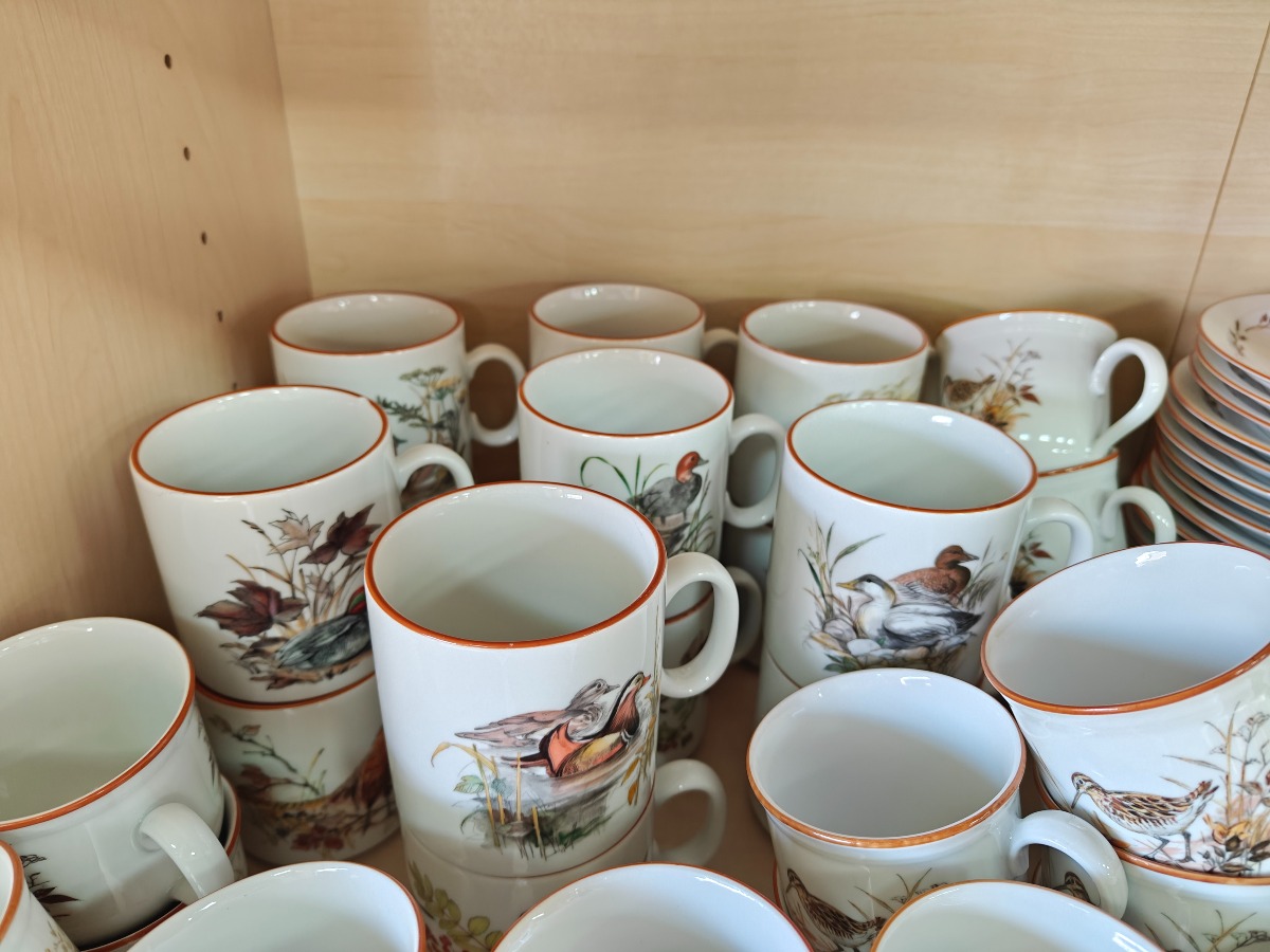 Ca. 50 kopper med underkopper. Mere end 10 tekrus. 10 smøreplatter.