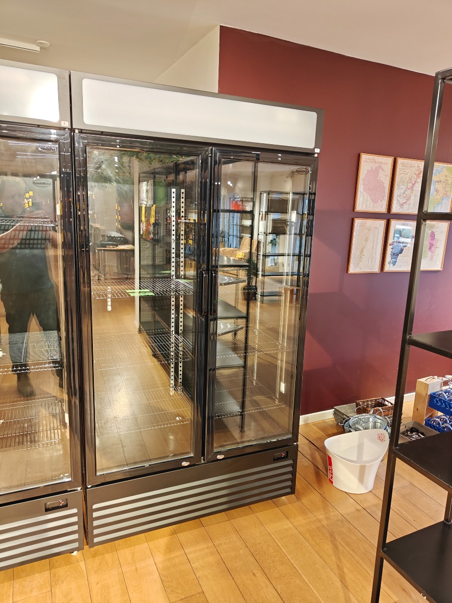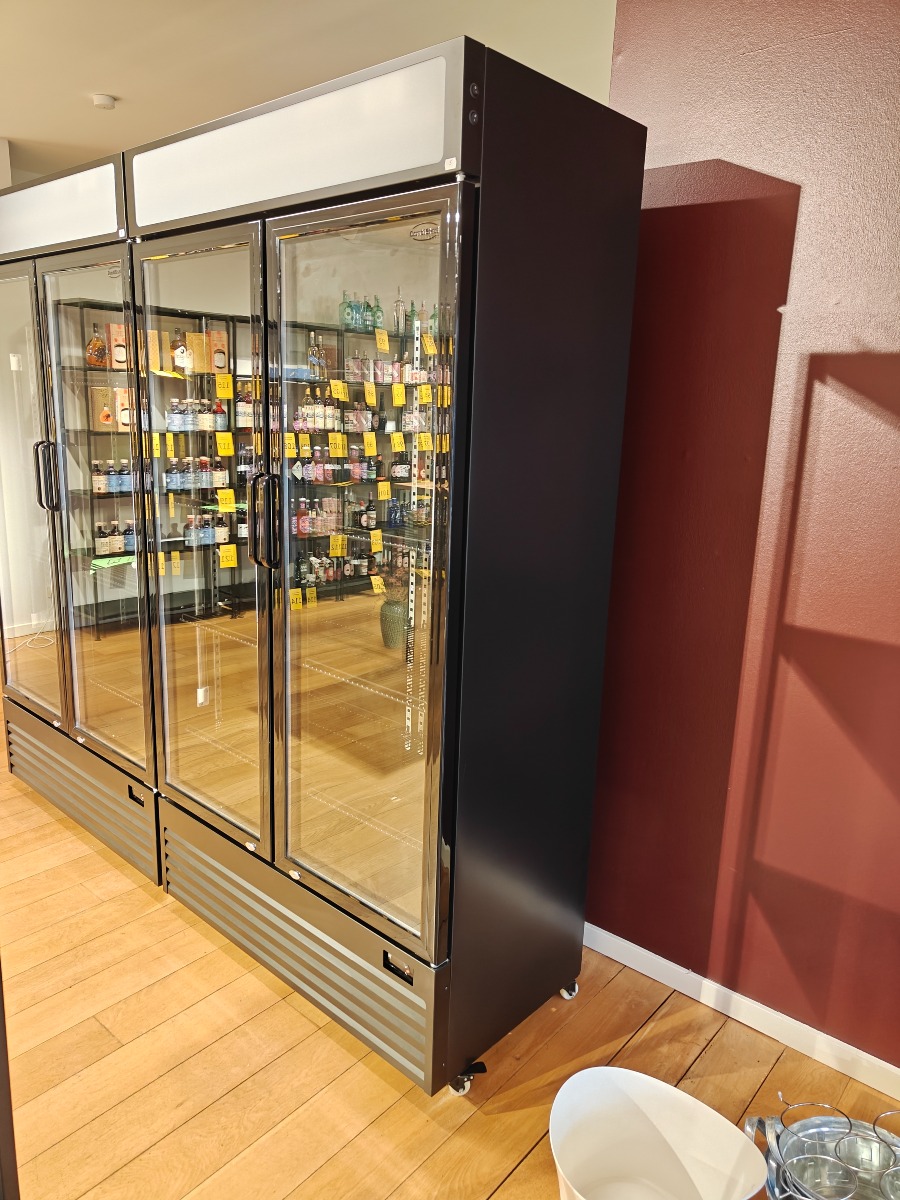 CombiSteel dobbeltlåget display-køleskab med sort overflade. Model. 7455,1394. 210 x 112 x 60 cm. Skabet har ikke kørt mange timer og fremstår i god stand. Vi garanterer ikke for funktionaliteten.