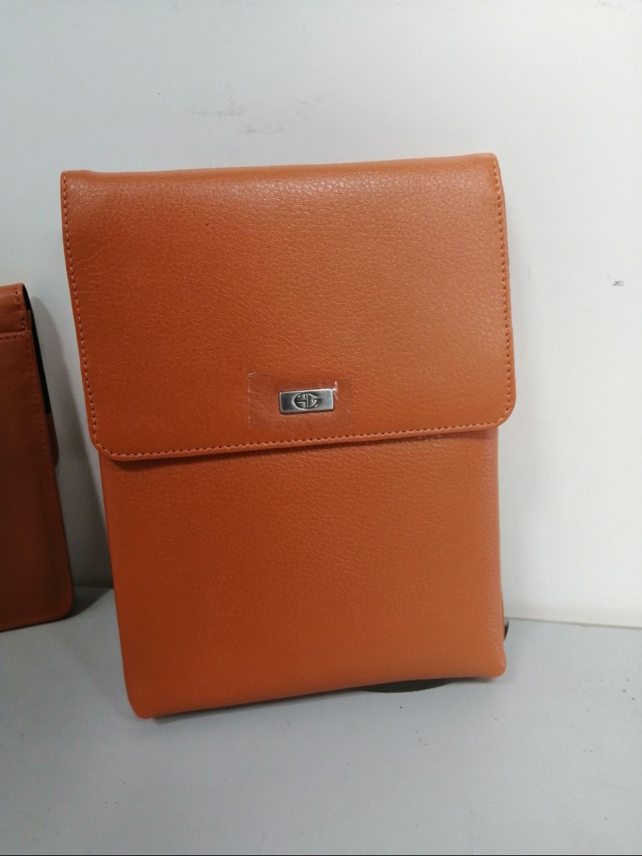 Bon Gout Ipad taske, orange læder. Skulderstrop medfølger. Ydre mål 20 x 25 cm.