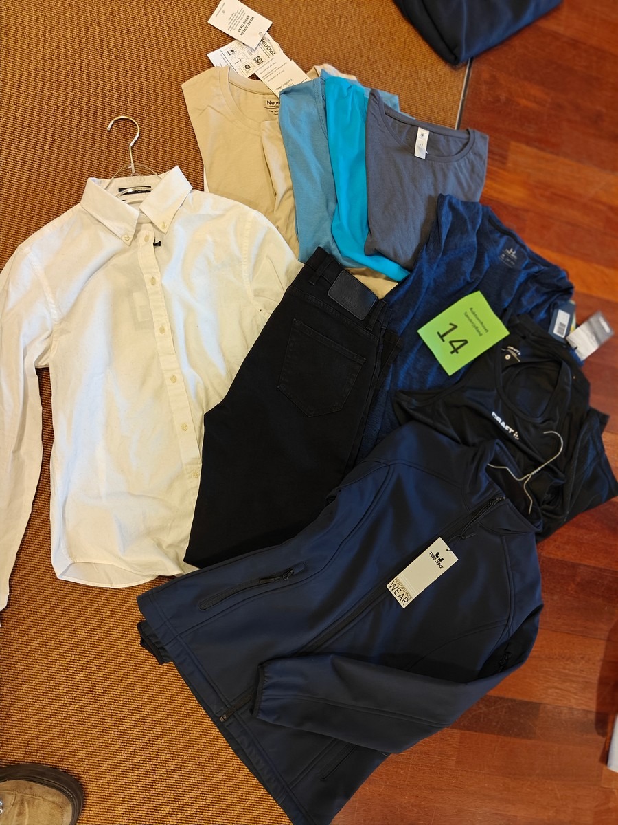 Dame tøj str. M. Softshell, skjorte, strecth bukser i sort, 6 stk. t-shirts, 2 stk. sports t-shirts. Oprydning for virksomhed. Ubrugt.