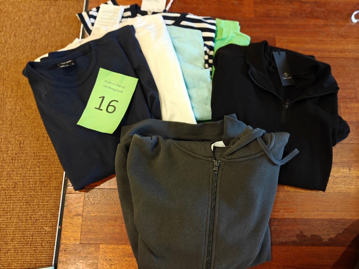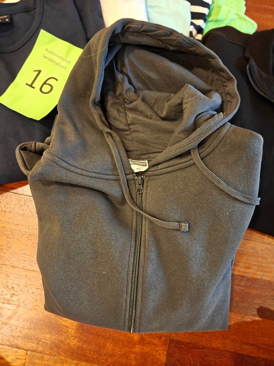 Herre basic tøj str. M. Hoodie med lynlås, sweatshirt med lynlås og 5 t-shirts. Dansk kvalitet. Oprydning for virksomhed. Ubrugt.