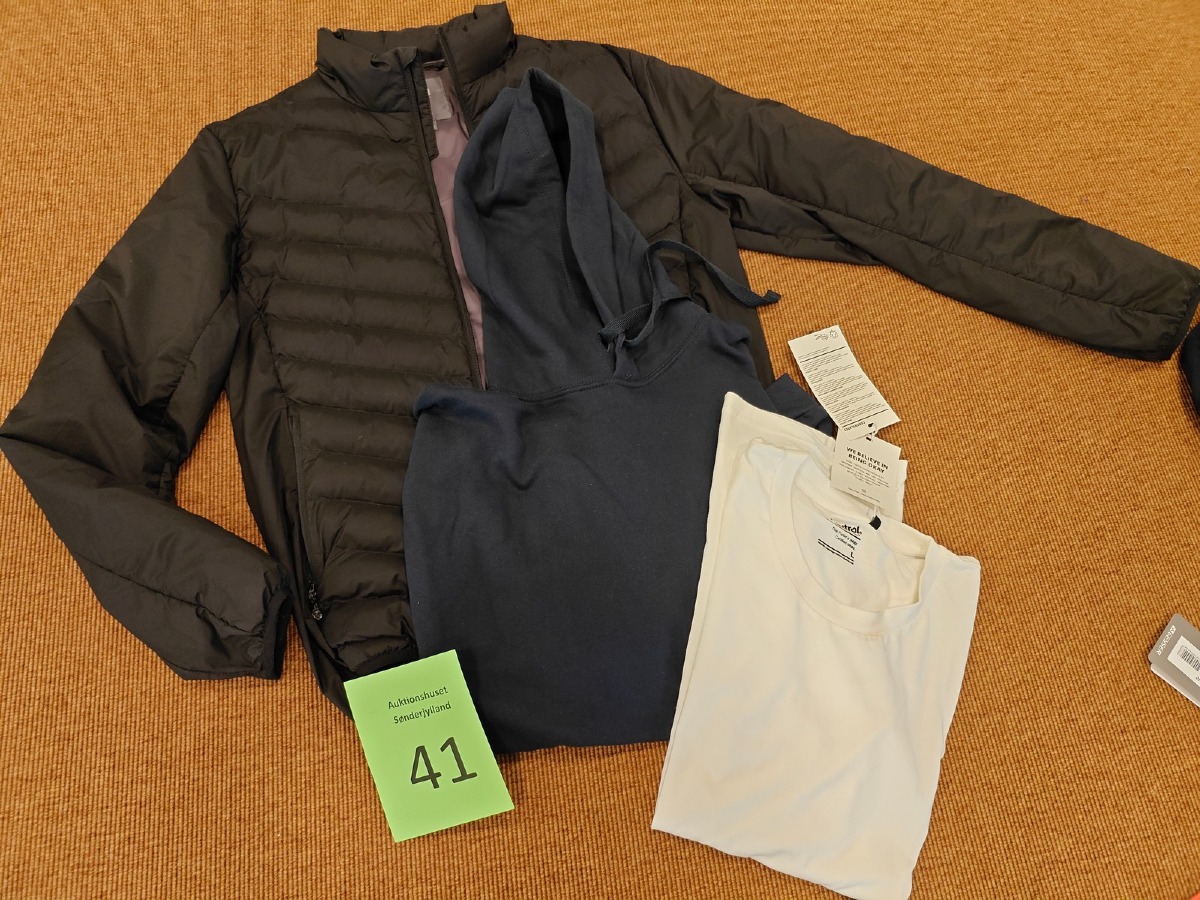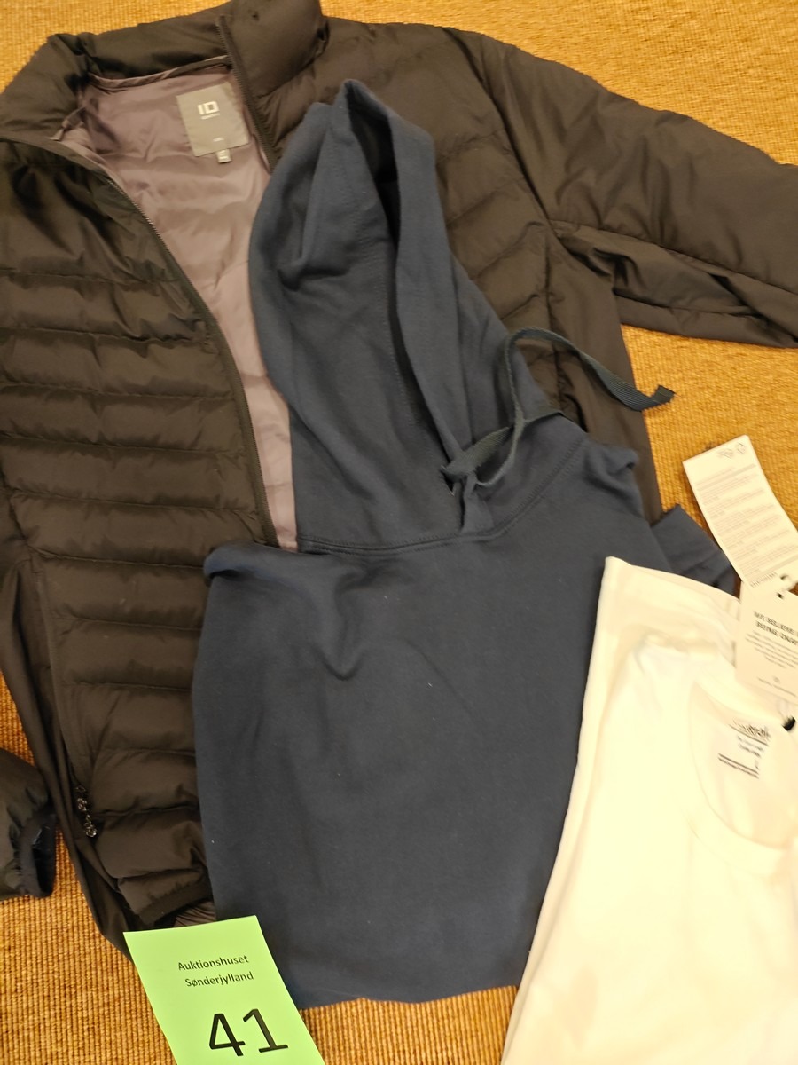 Herre basic tøj str. L. Jakke (let dun), hoodie og t-shirt. Oprydning for virksomhed. Ubrugt.