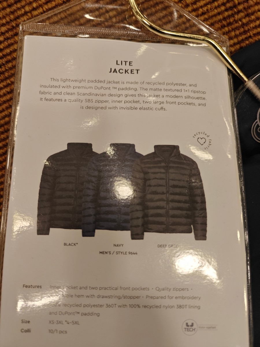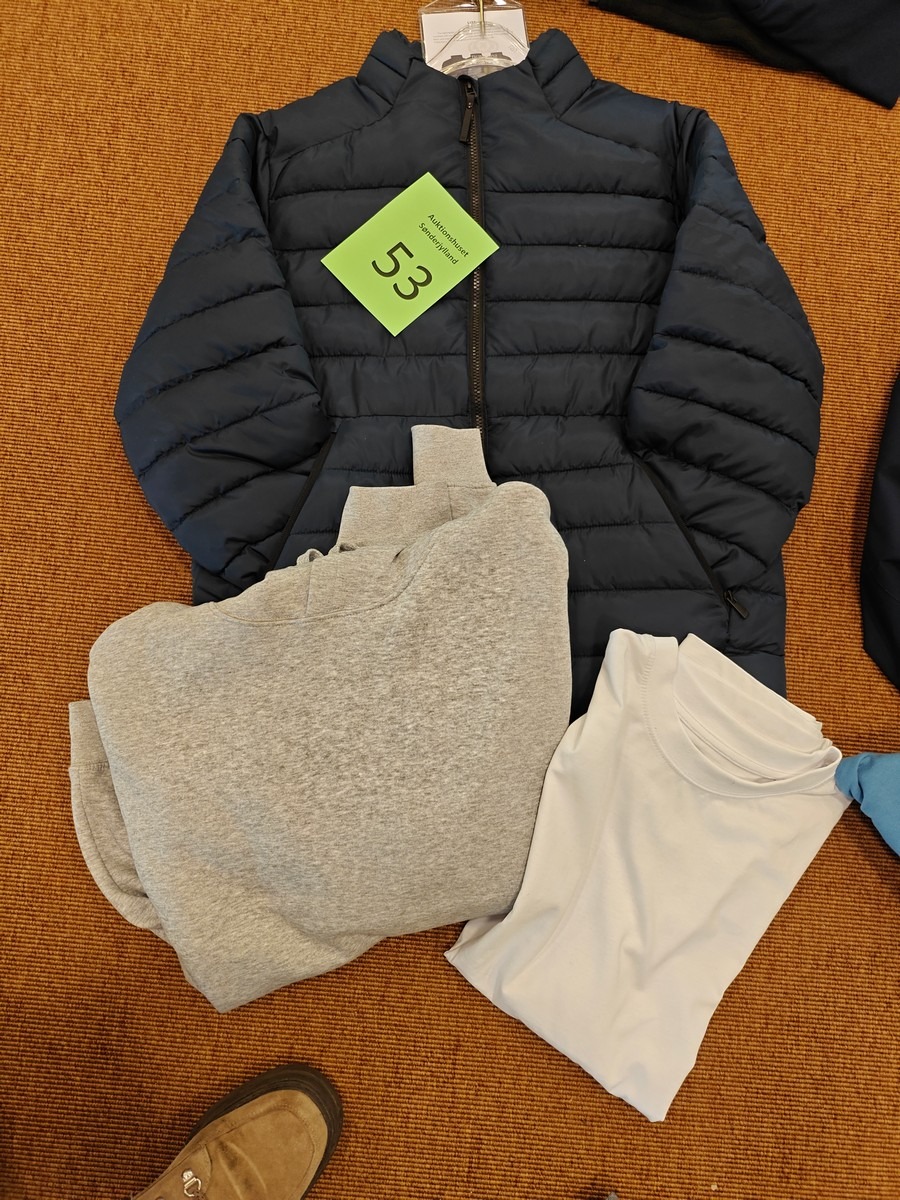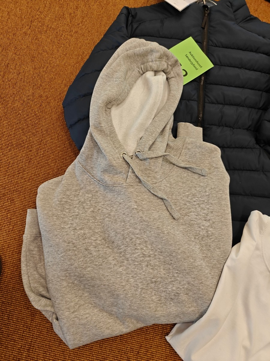 Herre basic tøj str. L. Dunjakke, hoodie og t-shirt. Oprydning for virksomhed. Ubrugt.