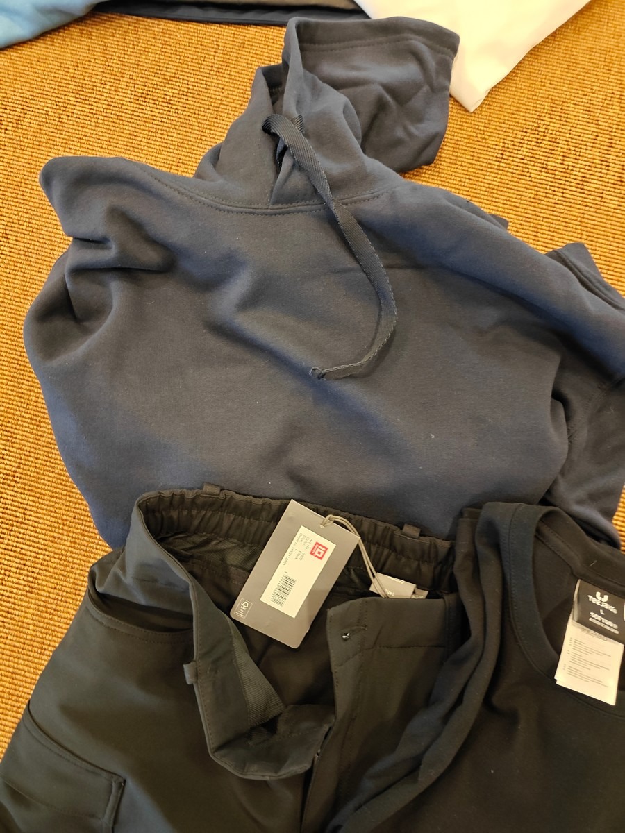 Herre basic tøj str. L. Fritidsbukser, hoodie og t-shirt. Dansk kvalitet. Oprydning for virksomhed. Ubrugt.