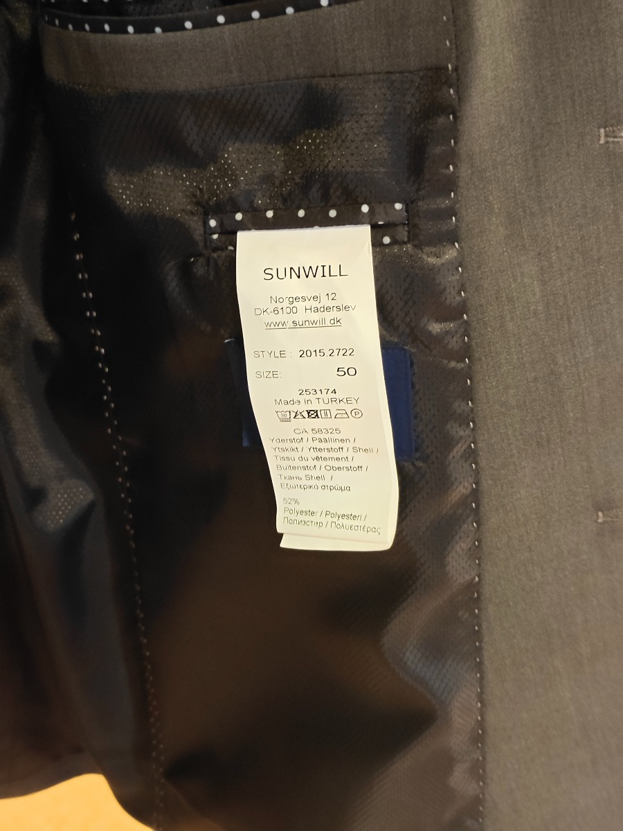 Herre jakkesæt str. 50 / M-L. Sunwill NOS. Farve: dark grey. Oprydning for virksomhed. Ubrugt.