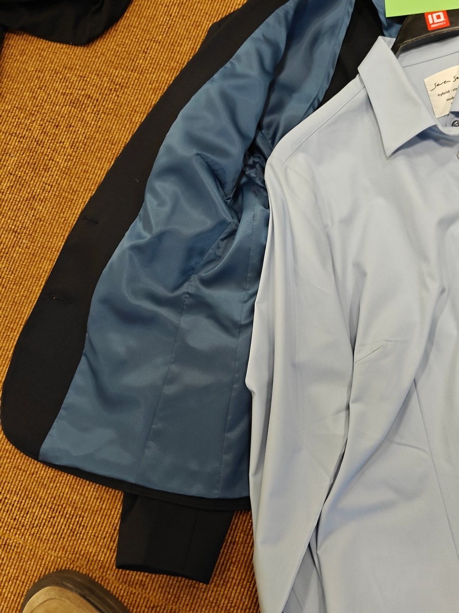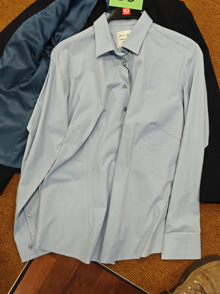 Dame blazer i navy og skjorte i blågrå str. 42 / XL. Sunwill NOS. Oprydning for virksomhed. Ubrugt.
