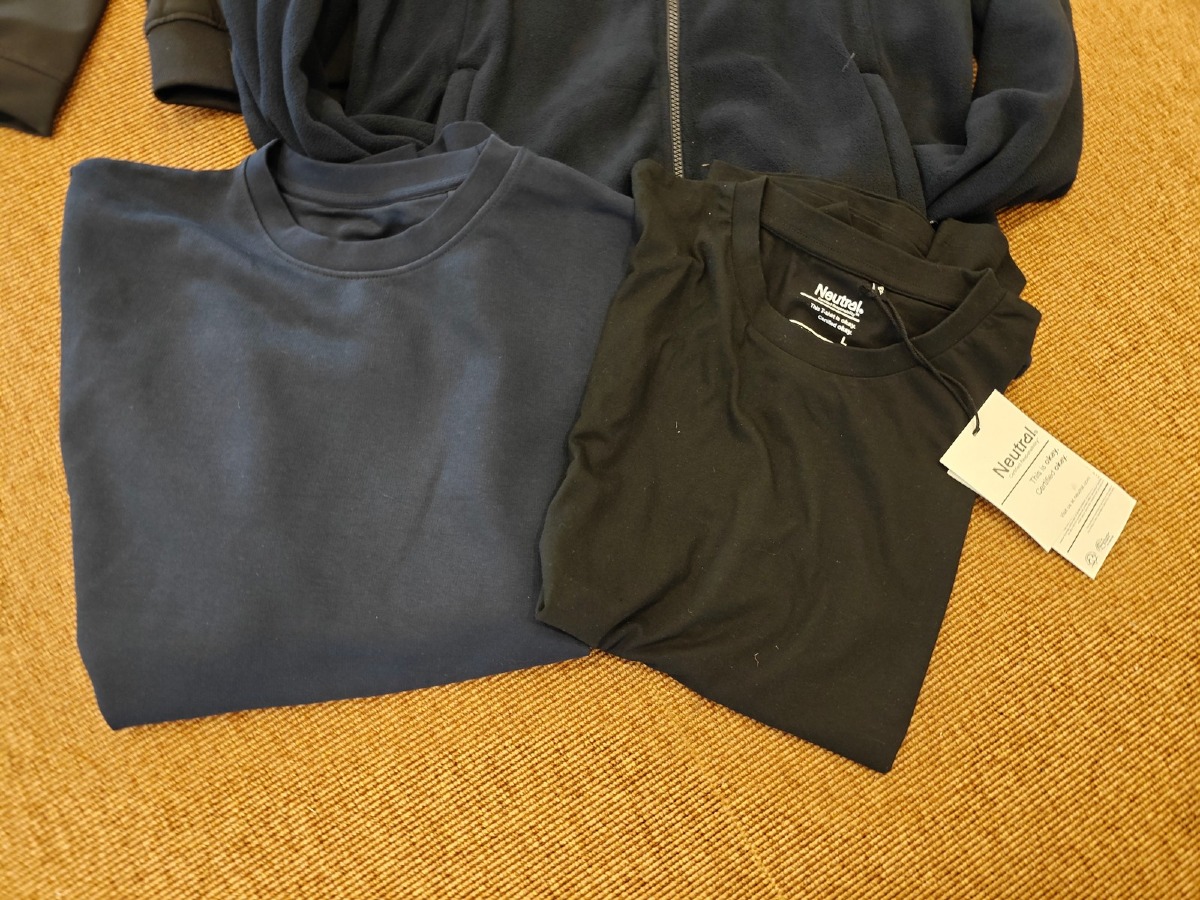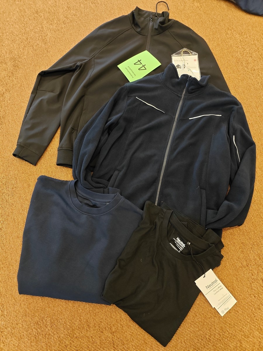 Herre basic tøj str. L. Softshelljakke, microfleece, sweatshirt og t-shirt. Oprydning for virksomhed. Ubrugt.