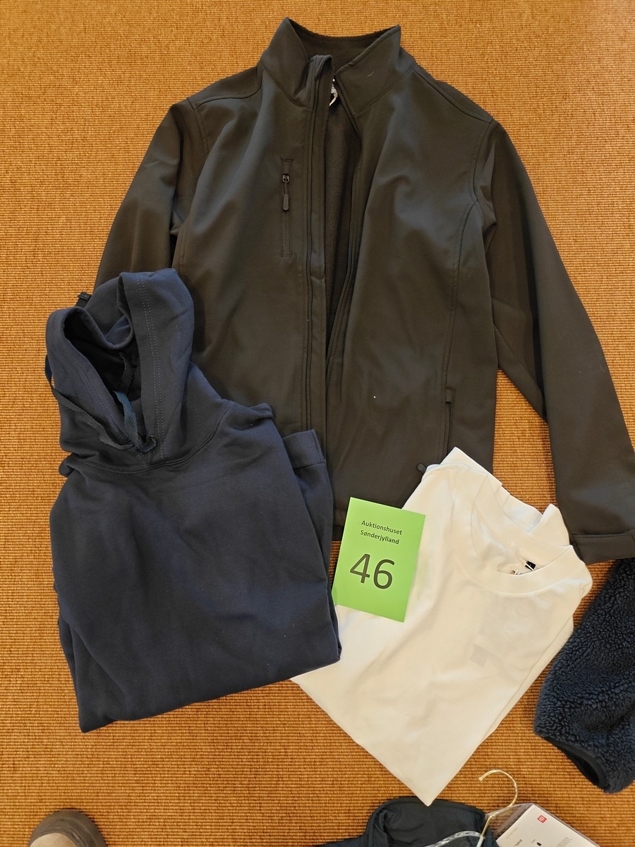 Herre basic tøj str. L. Softshelljakke, sweatshirt og t-shirt. Oprydning for virksomhed. Ubrugt.
