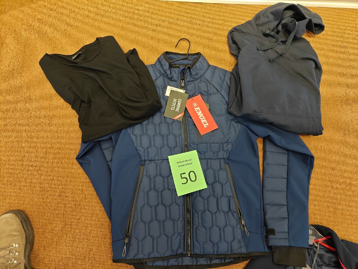 Herre basic tøj str. L. Engel kombi jakke, hoodie og t-shirt. Dansk kvalitet. Oprydning for virksomhed. Ubrugt.