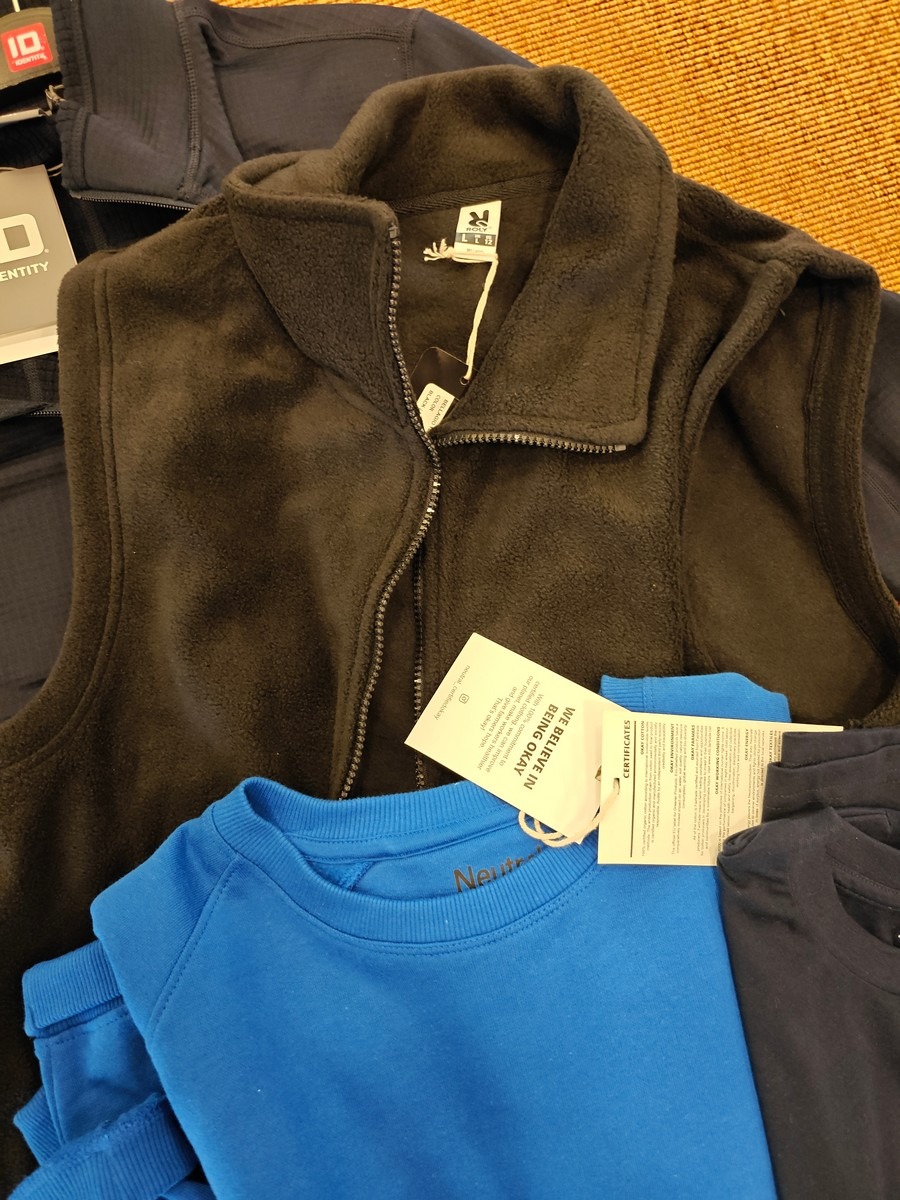 Herre basic tøj str. L. Inderjakke, vest, sweatshirt og t-shirt. Dansk kvalitet. Oprydning for virksomhed. Ubrugt.