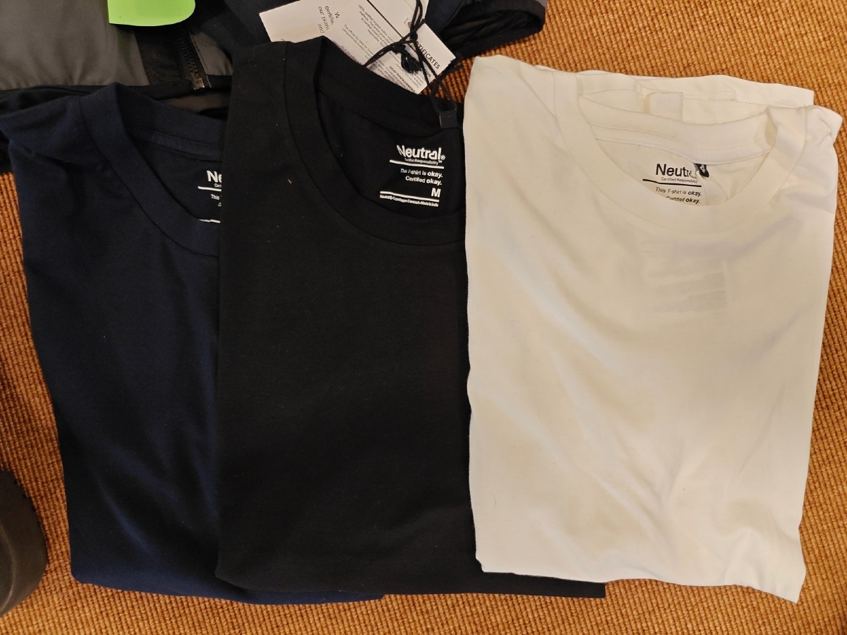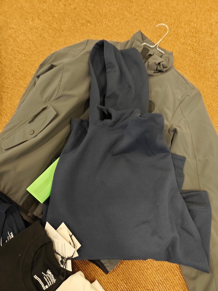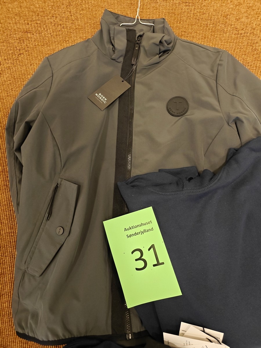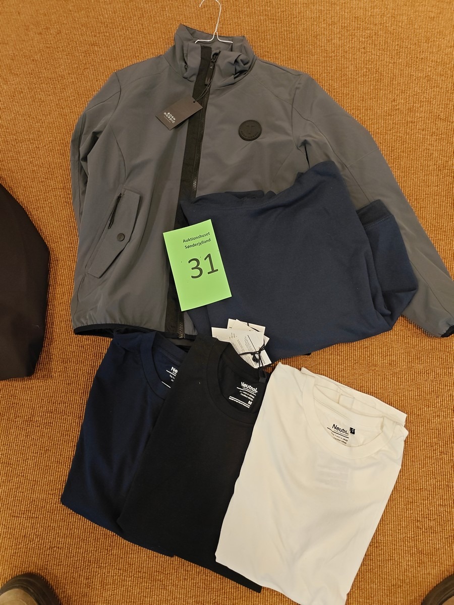 Herre basic tøj str. M. Softshelljakke, hoodie og 3 stk. t-shirt. Dansk kvalitet. Oprydning for virksomhed. Ubrugt.