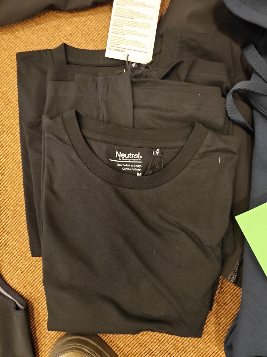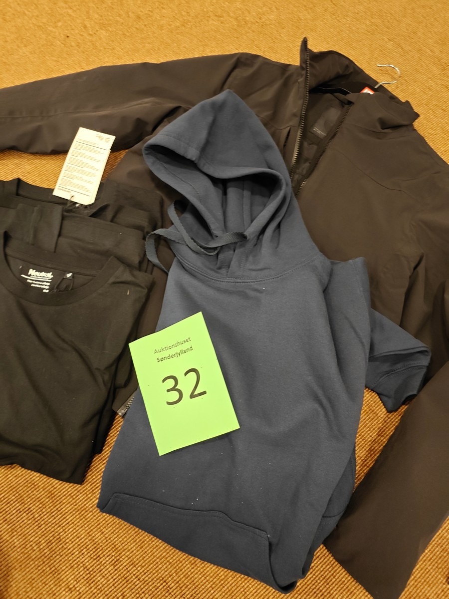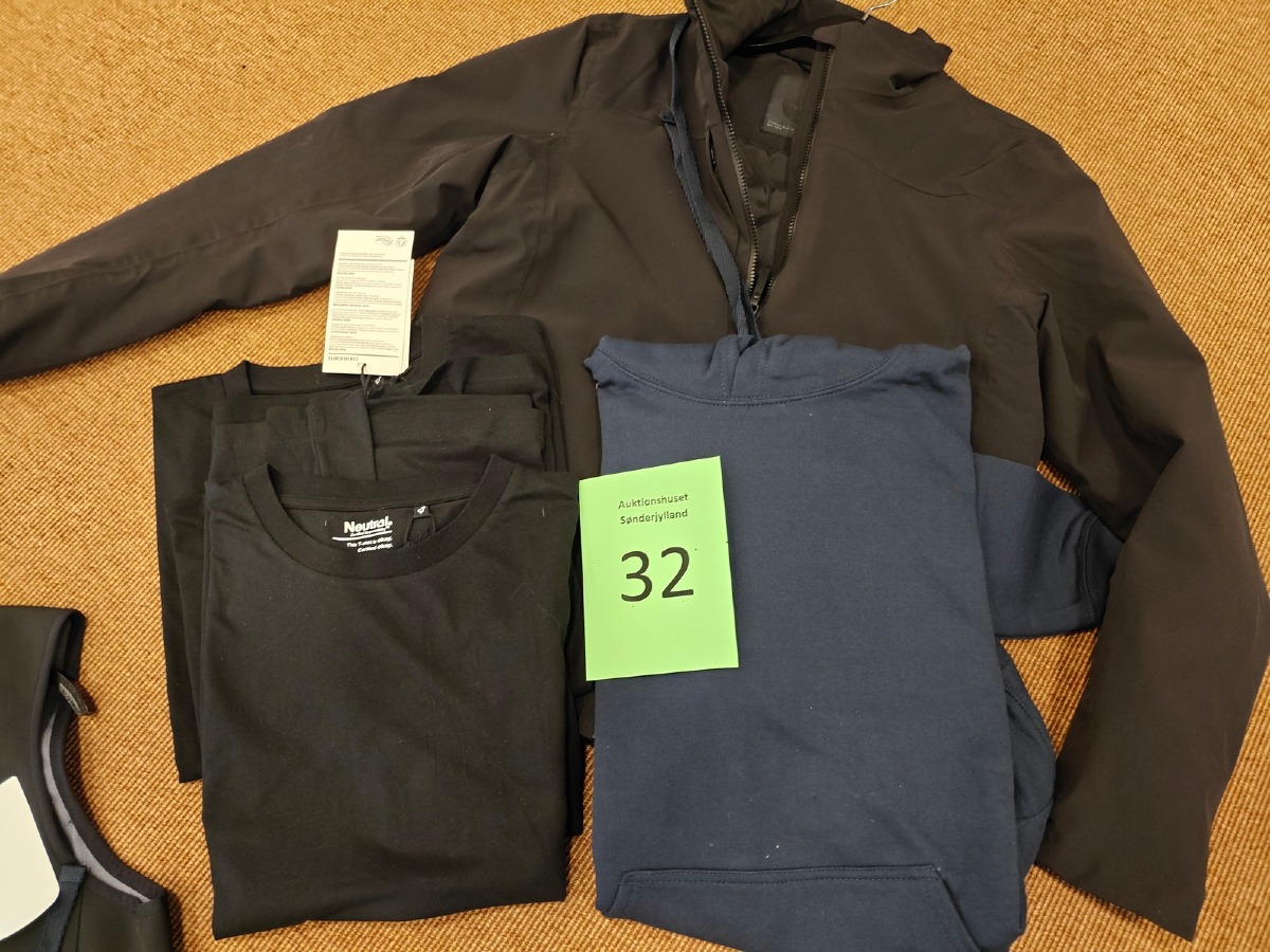 Herre basic tøj str. M. Softshelljakke, hoodie og 3 stk. t-shirt. Dansk kvalitet. Oprydning for virksomhed. Ubrugt.