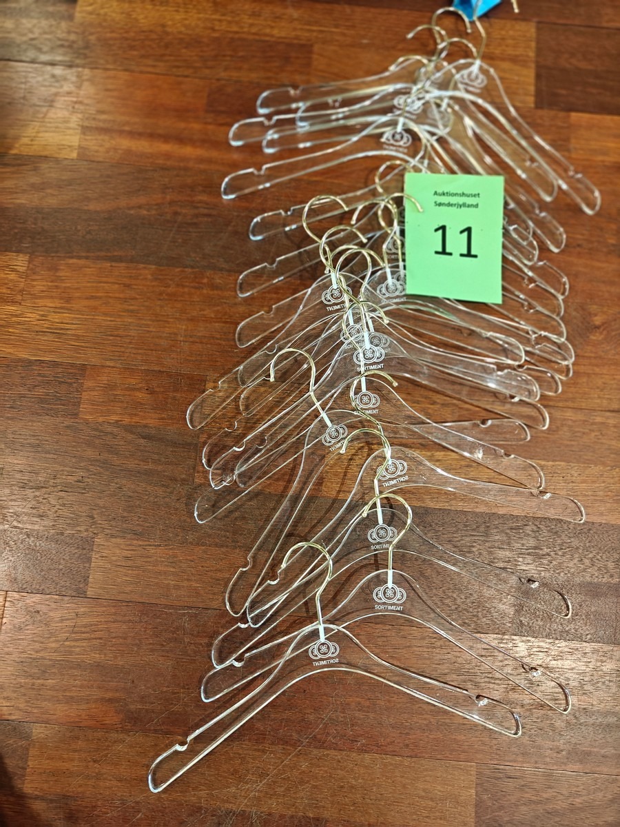 20 stk. klare akryl bøjler. Oprydning for virksomhed. Brugte.