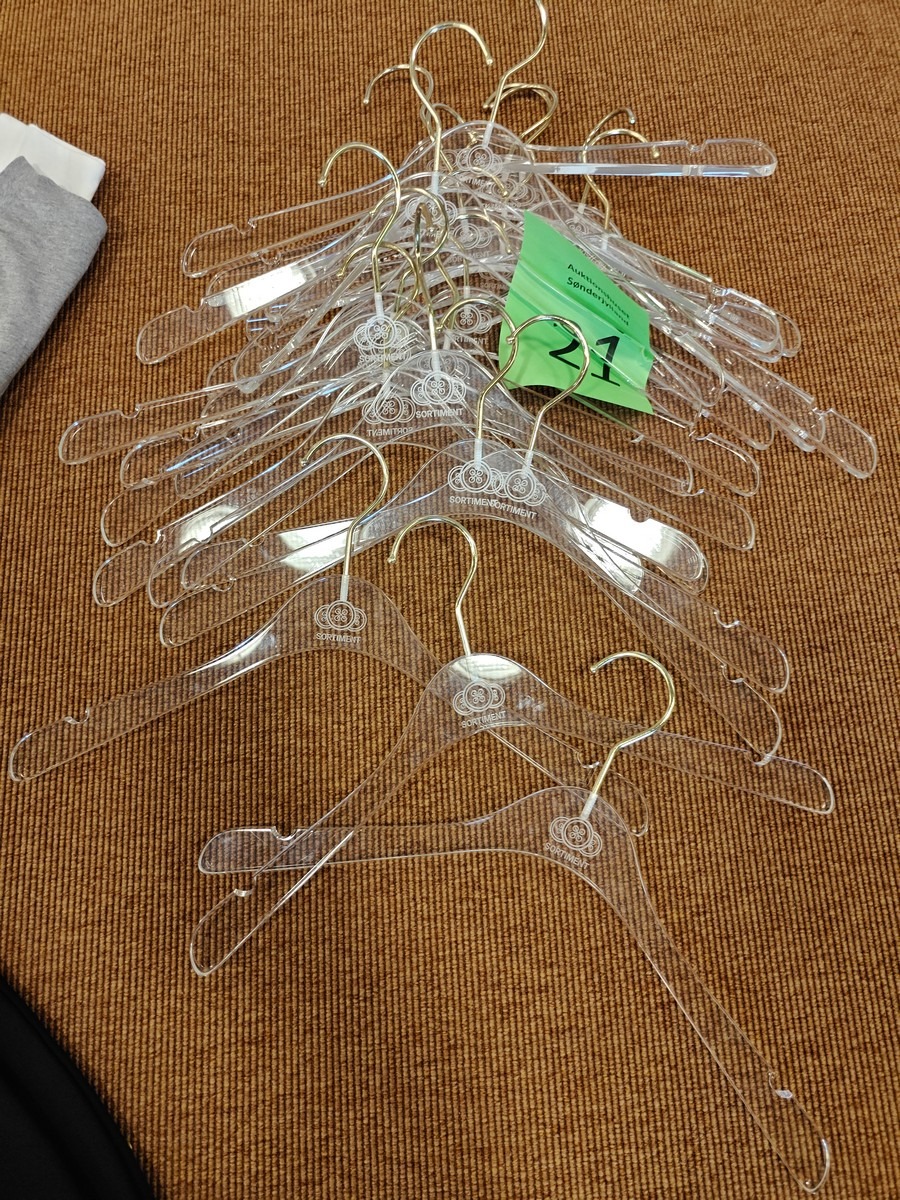 20 stk. klare akryl bøjler. Oprydning for virksomhed. Brugte.