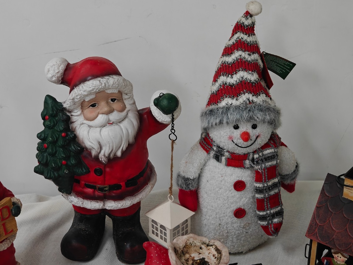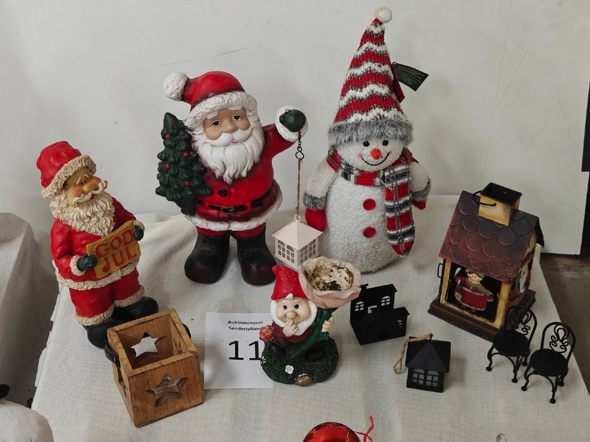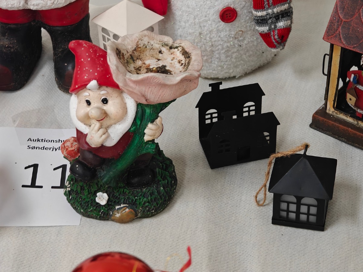 Havenisse, julemænd (stor: H: 40 cm), snemand (H: 33 cm) & lanterner. Brugte (snemand ubrugt).