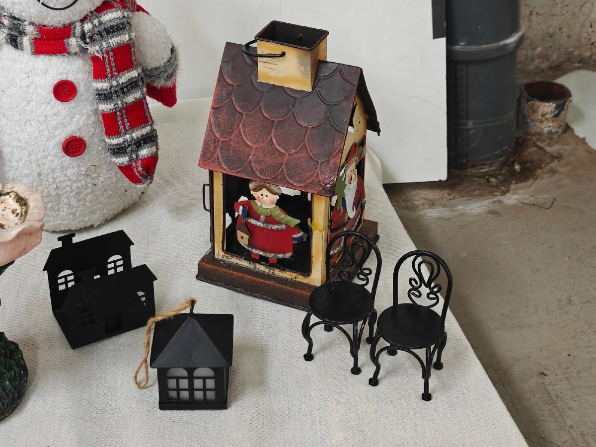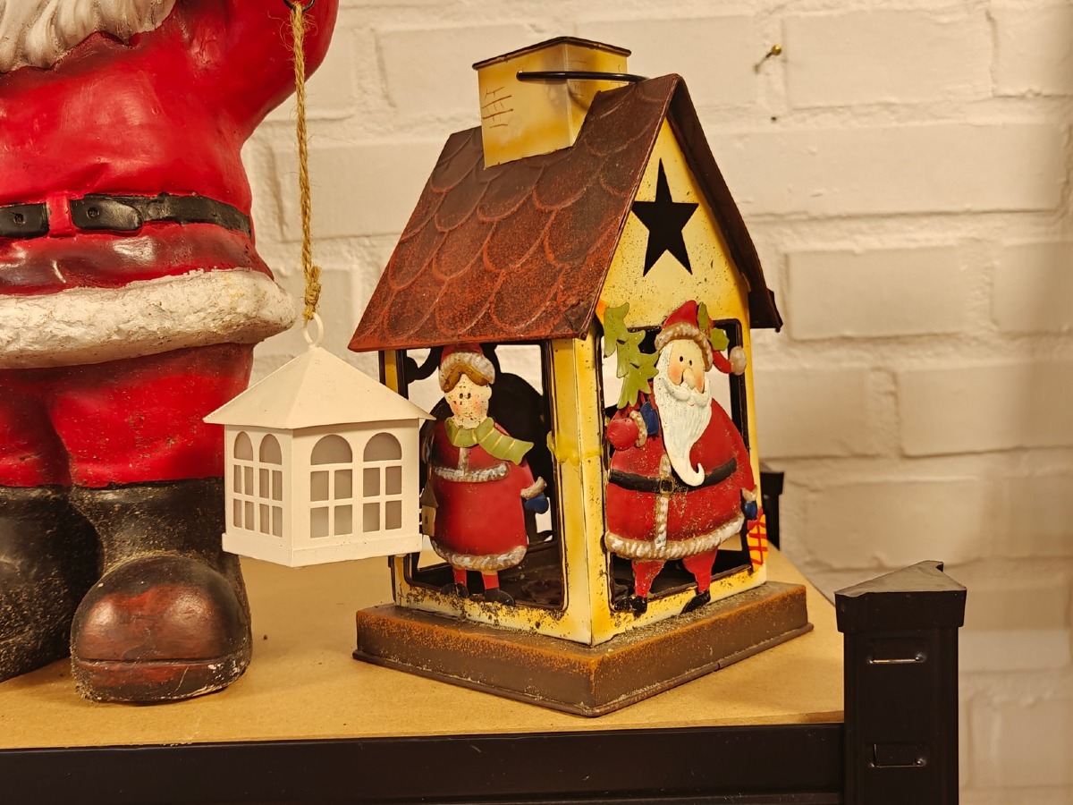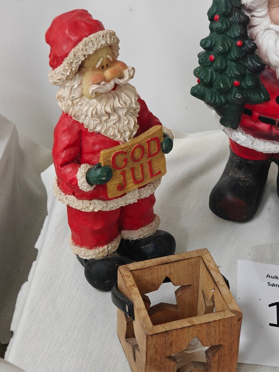 Havenisse, julemænd (stor: H: 40 cm), snemand (H: 33 cm) & lanterner. Brugte (snemand ubrugt).