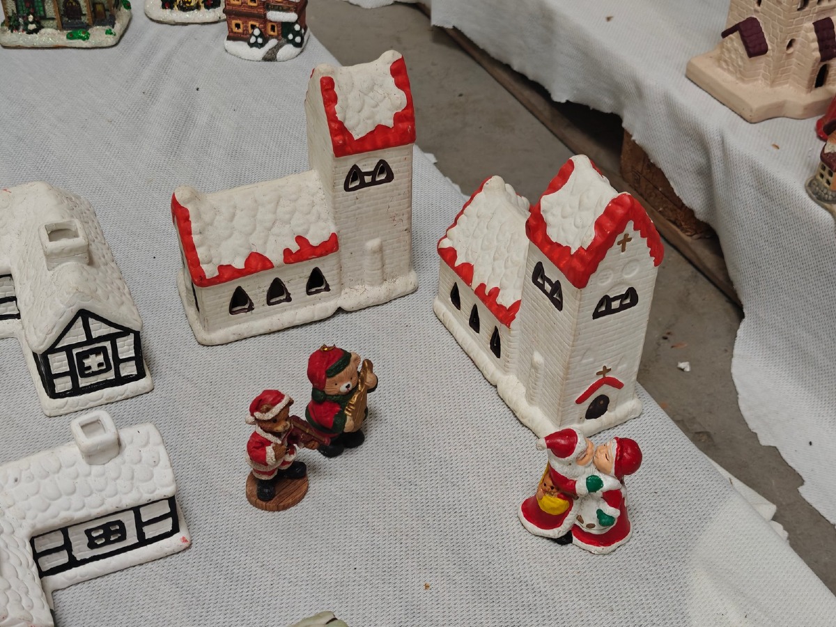 Juleby: 2 Kirker, 11 huse & 4 figurer. Brugt.