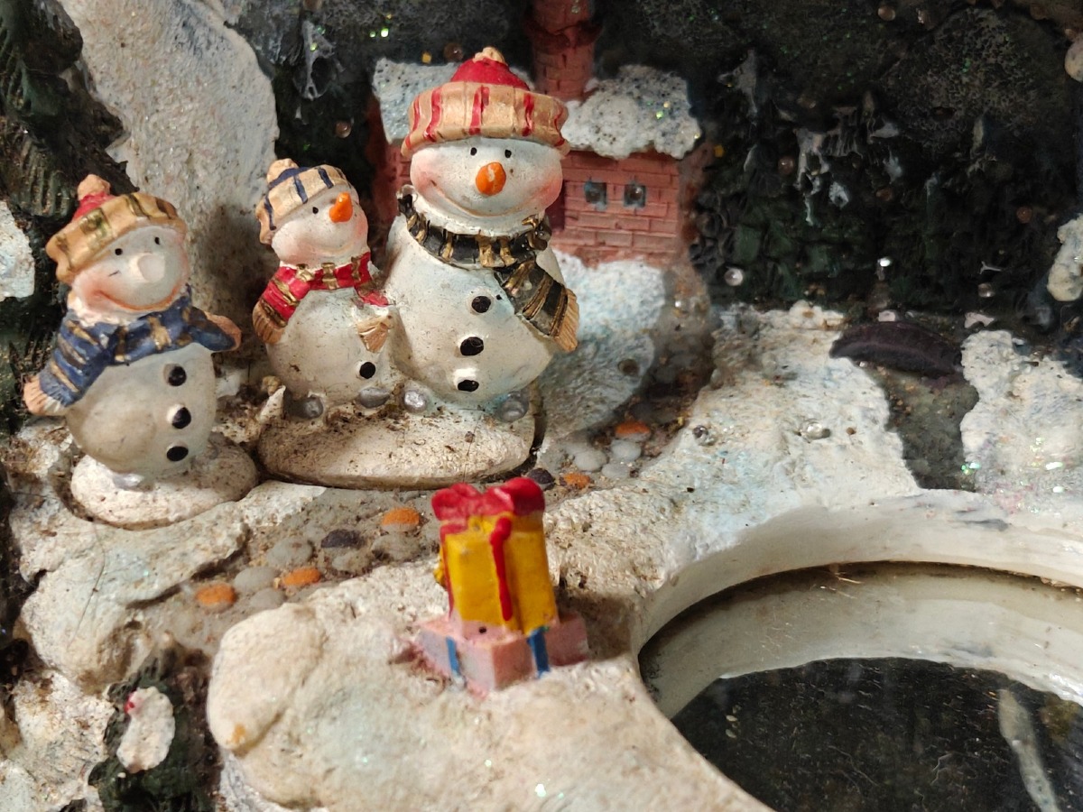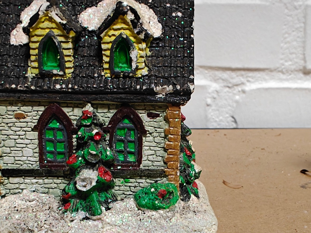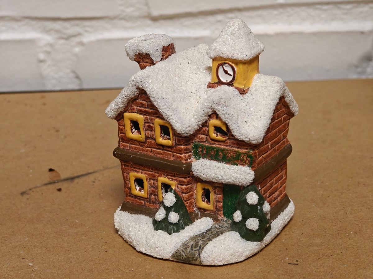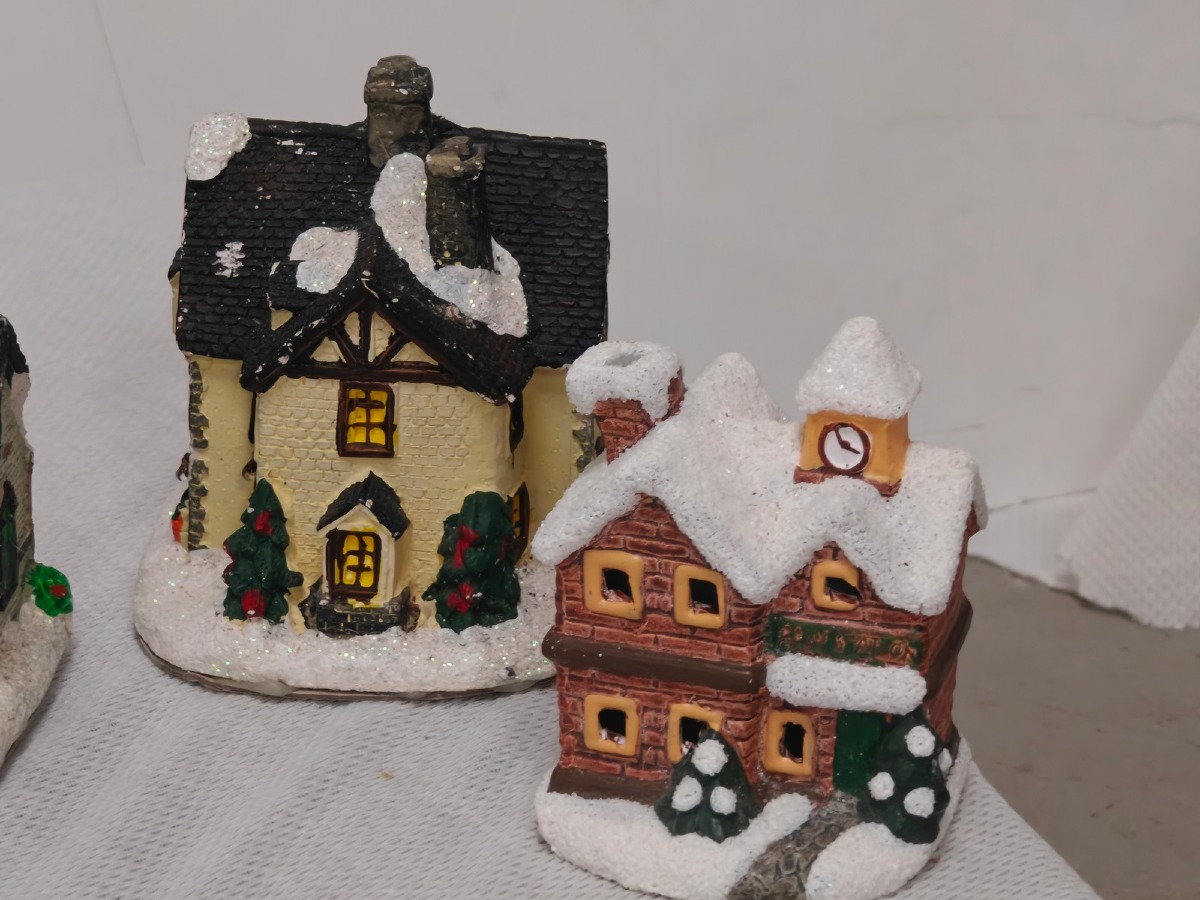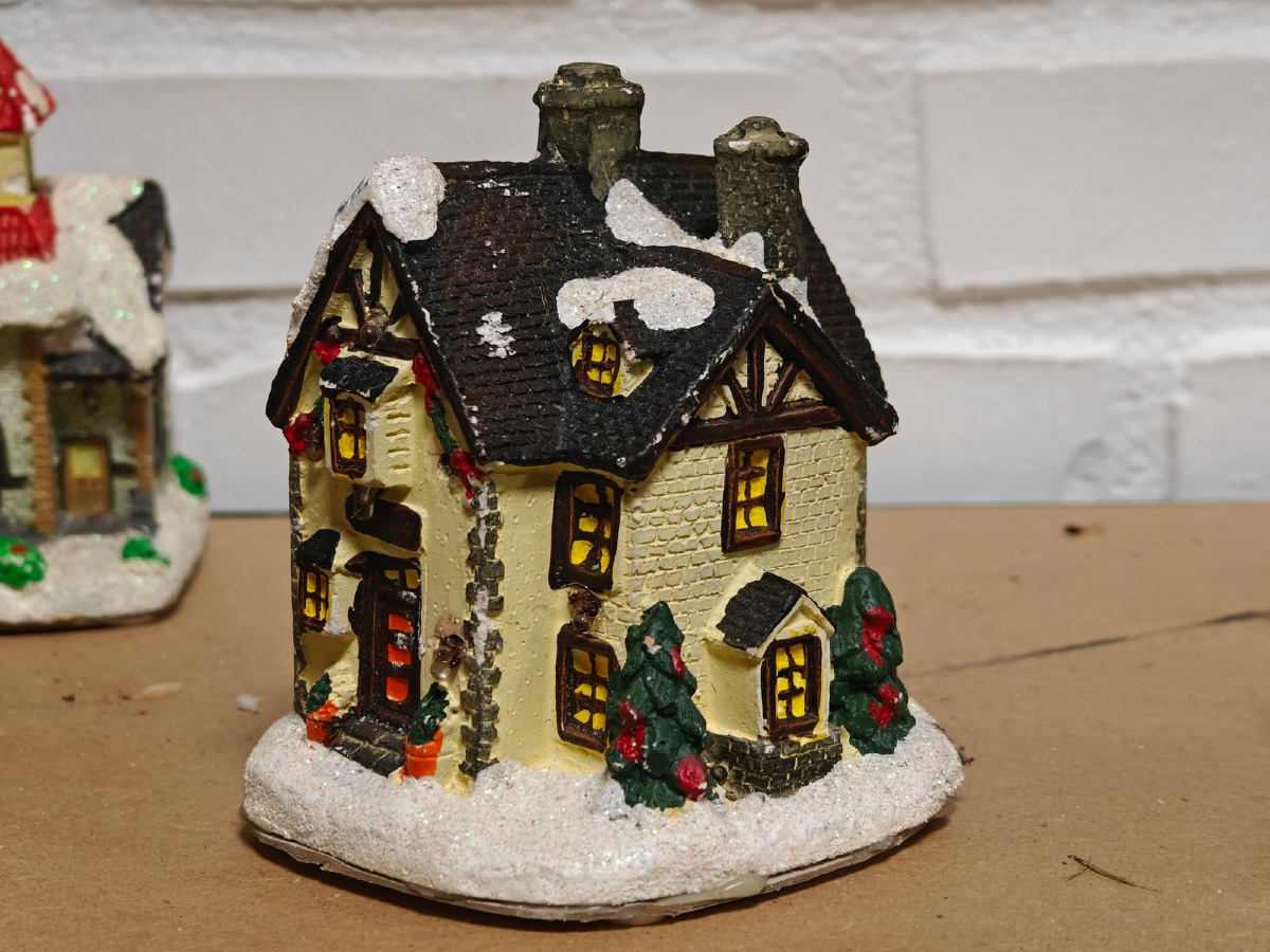 Juleby. Udført med mange fine detaljer. De 2 store figurer er til batteri for lys og/eller lydeffekt, men funktionaliteten af disse er ikke testet ved indskrivning. Brugt.