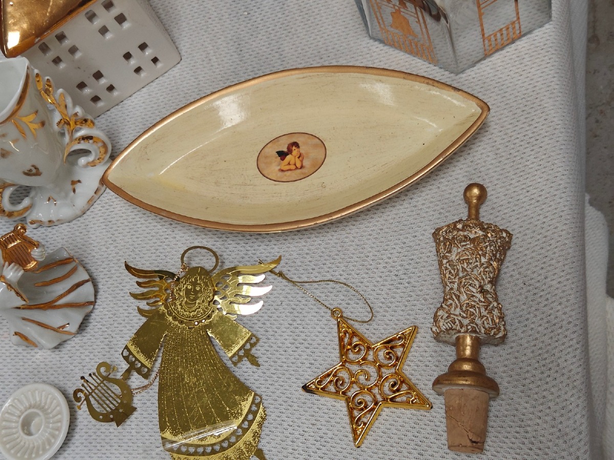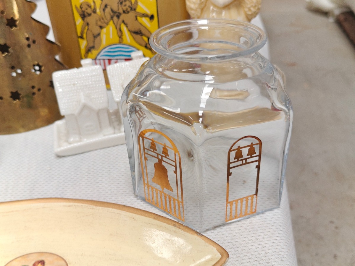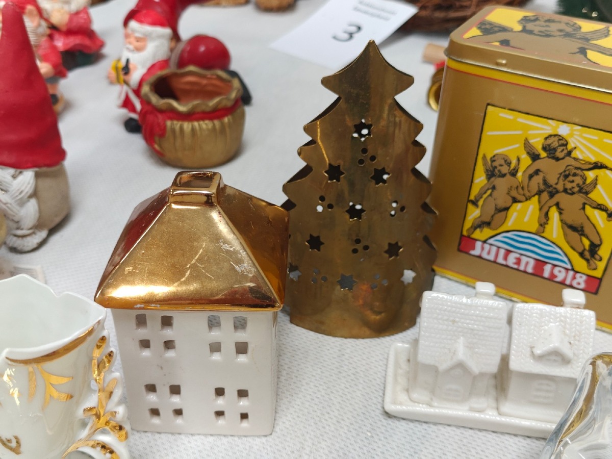 Julepynt: Retro kagedåse, krukke, salt & peber sæt, stager mm. Brugt.