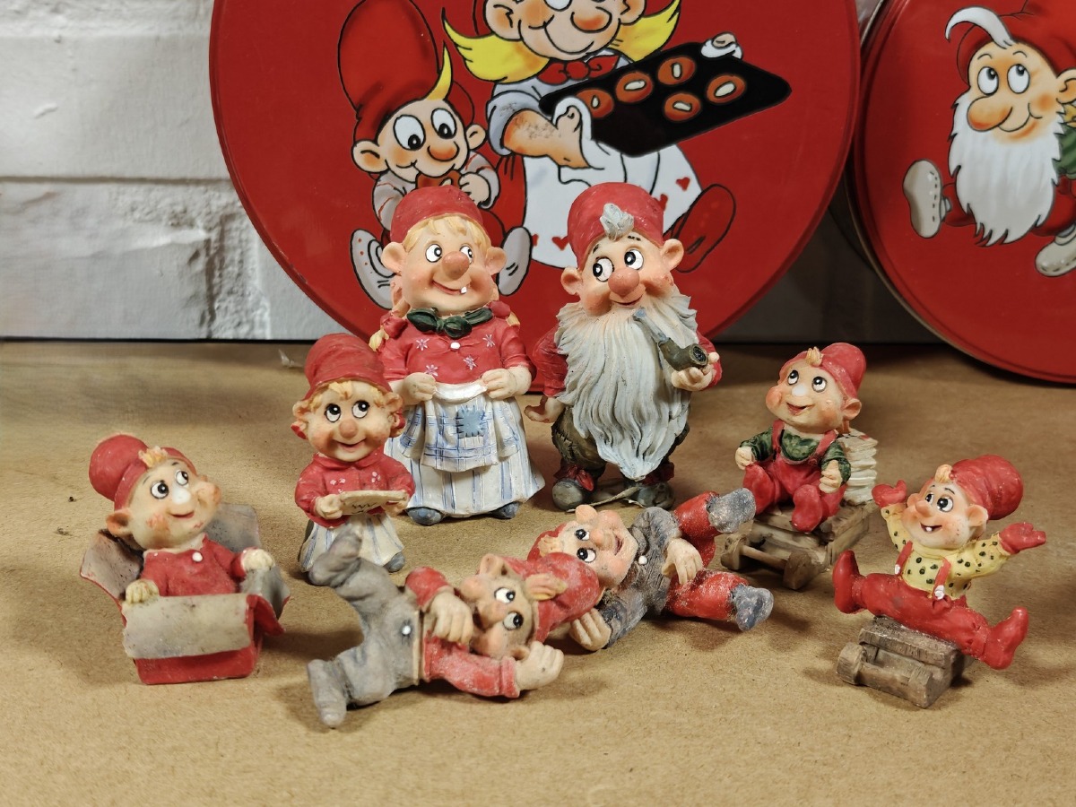 Julius-nisser & Henny Iversen nisser samt 2 kagedåser. Brugt.