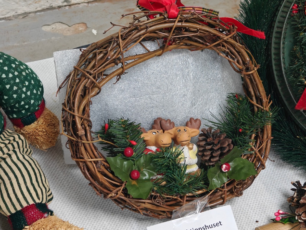 Retro: 2 dørkranse (stor krans: ø35 cm), 1 jule'bamse', 1 vægpynt & 1 krukke