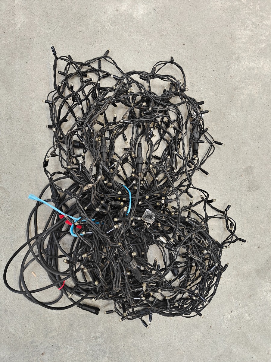 LED-lyskæder Der er mellem 40-60 meter i alt fordelt på mindre kæder. Samlet ca. 120 LED. Main connector 230V medfølger. Der medfølger ekstra ledning. Varen er brugt og oversete fejl eller mangler kan derfor forekomme.