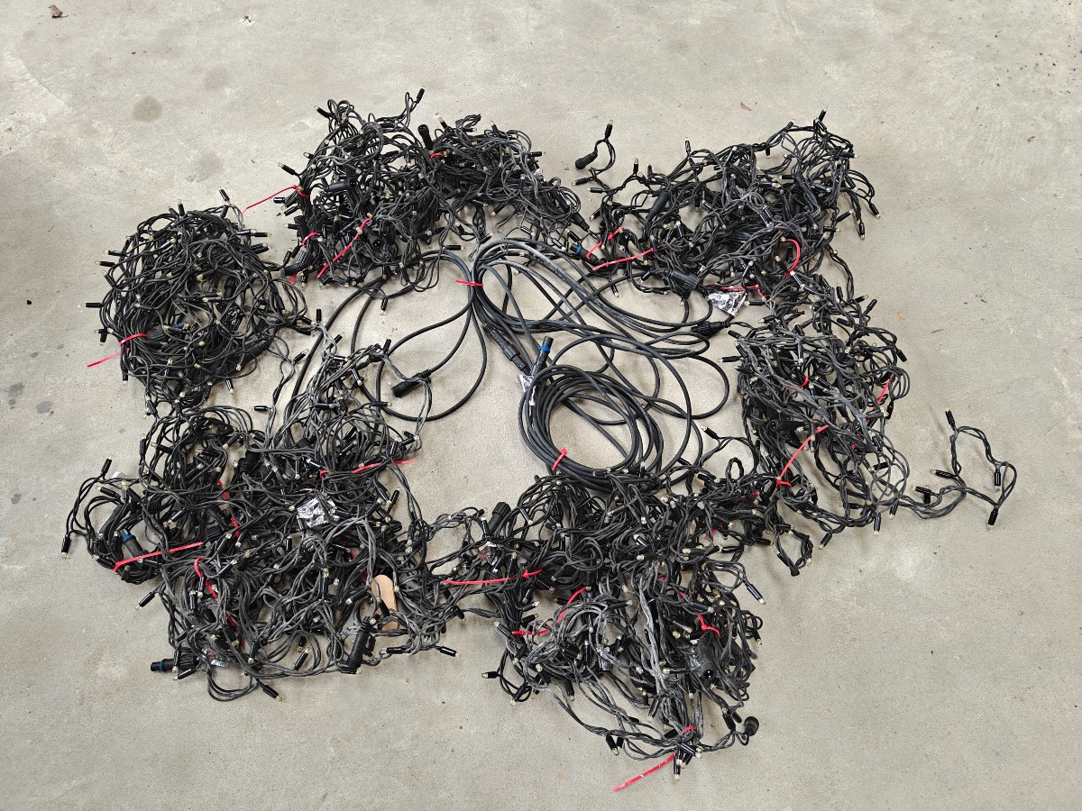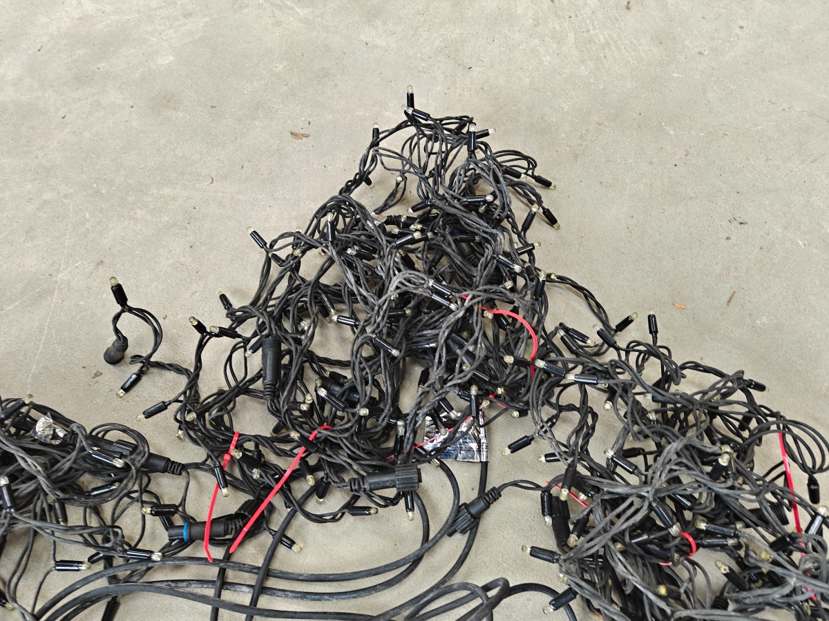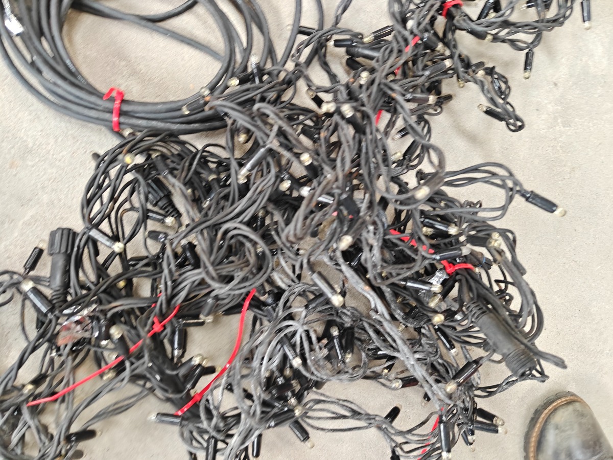 LED-lyskæder Der er mellem 40-60 meter i alt fordelt på mindre kæder. Samlet ca. 120 LED. Der skal bruges en main connector 230V. til kæderne. Denne medfølger IKKE.