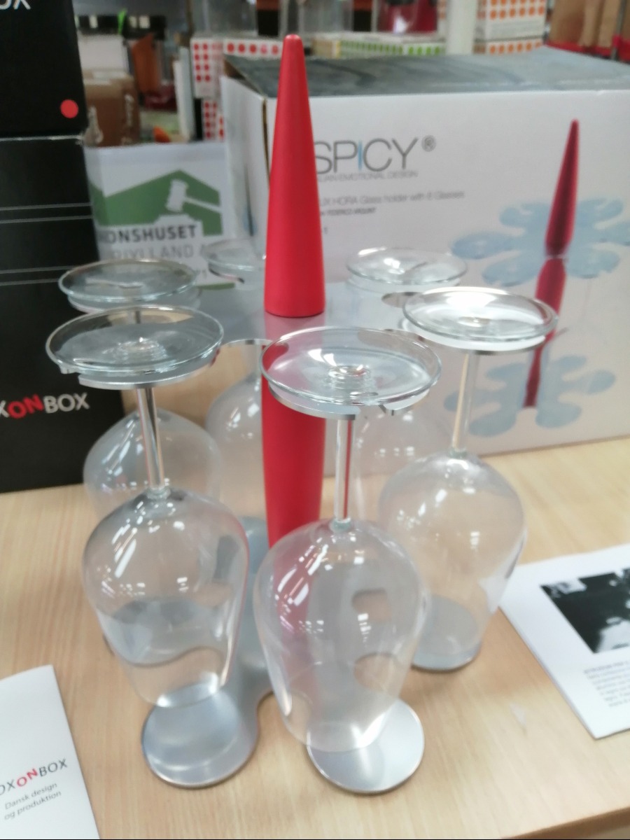 Beierholm  3 x Box on box i rød, med stander til 6 glas. Rød.