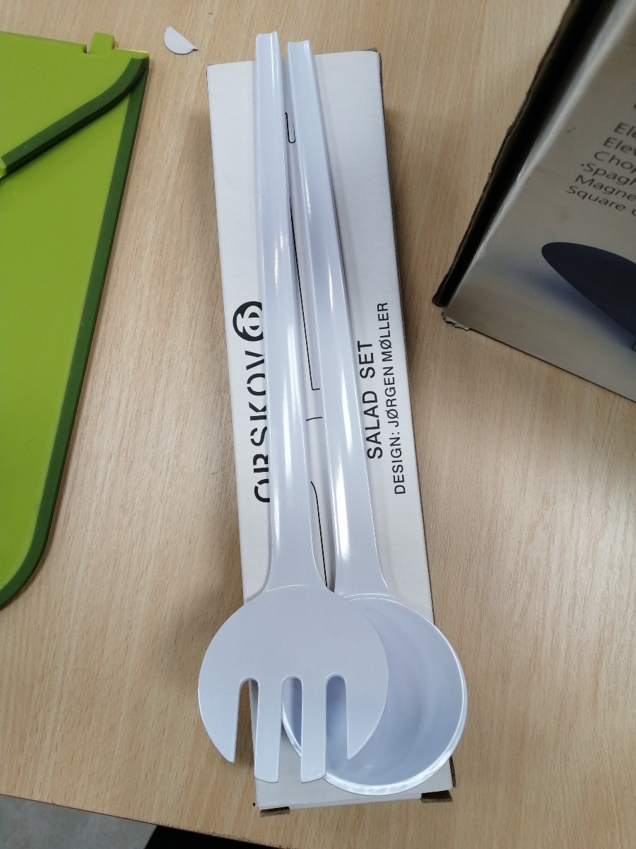 Kitchen sæt, grøn skærebræt, salat bestik.