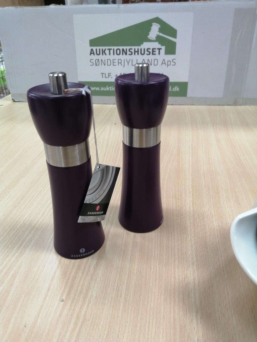 Lille kande med trælåg Fra Legnoart. Salt og peber i lilla.