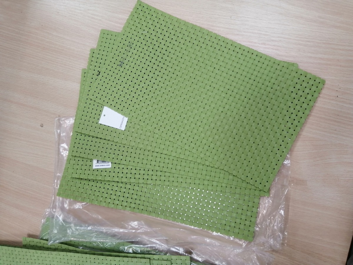 Lime grønne dækkeservietter i flet, 10 store, 5 små.