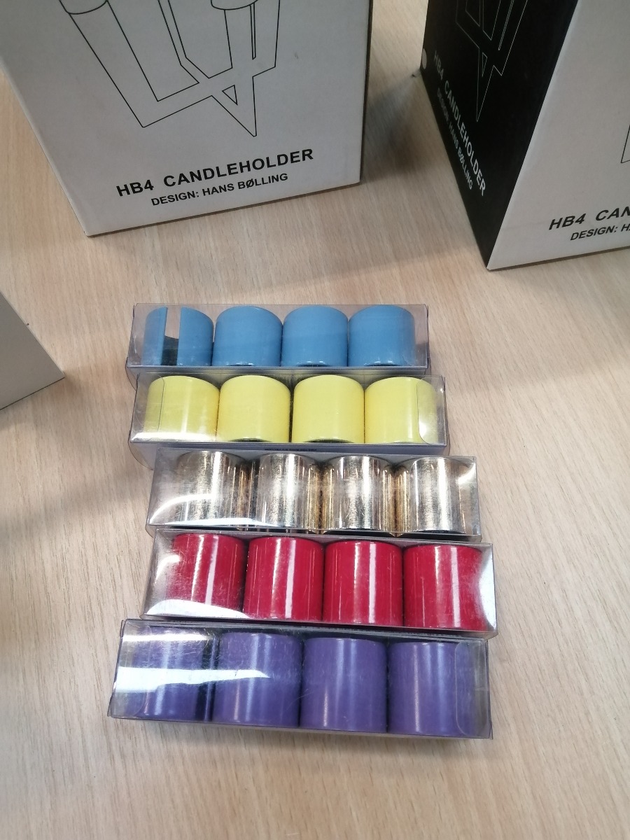 2 stk lysestager i hvid med forskellige farve lysholder til.