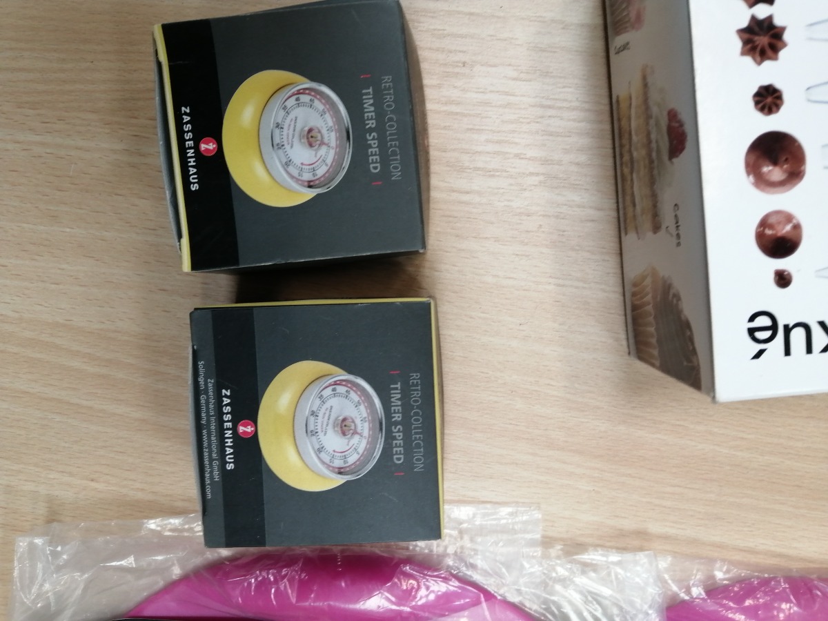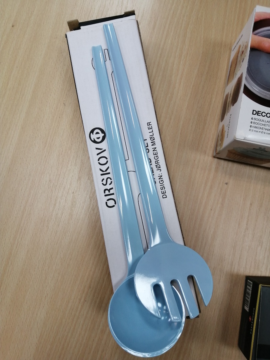 Skærebræt x 3, ur timer x 2, salatbestik, Decomax til kager.