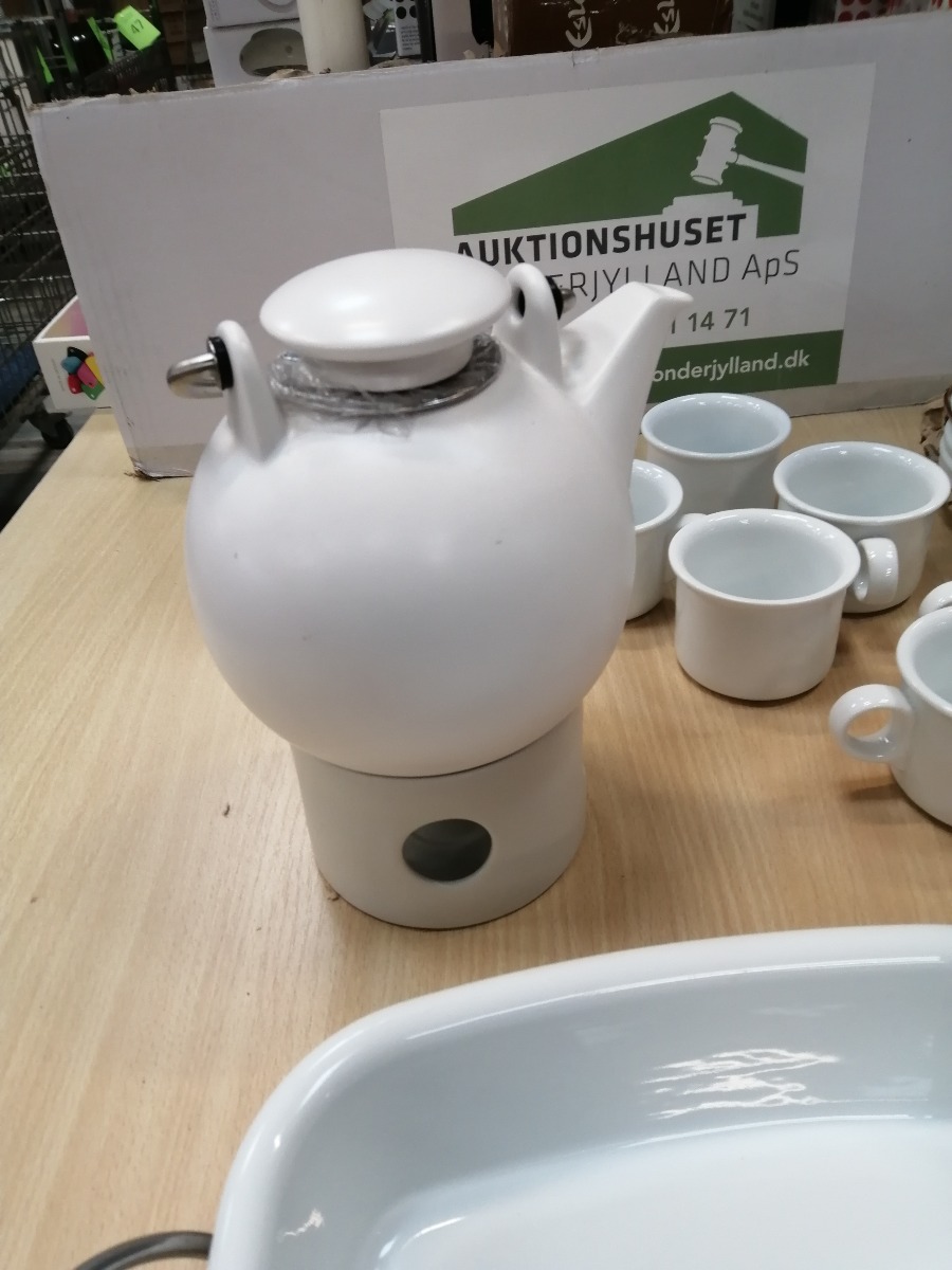 tekande med varmetallerken, salatbestik x 2.