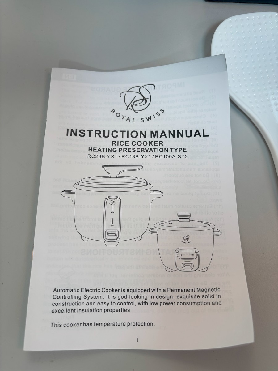 Royal swiss riskoger, 650 Watts, 1,8 L. Model RC18B-YX1. Ubrugt