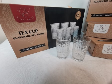 Små drikke/te glas med fint mønster. 48 stk. Pakket i pakker af 12 stk. Ubrugte, i original emballage
