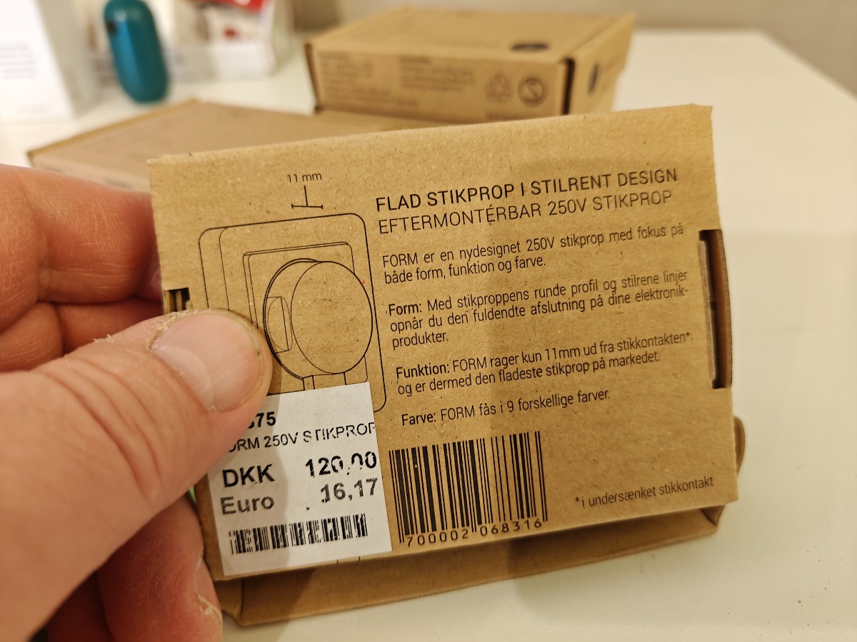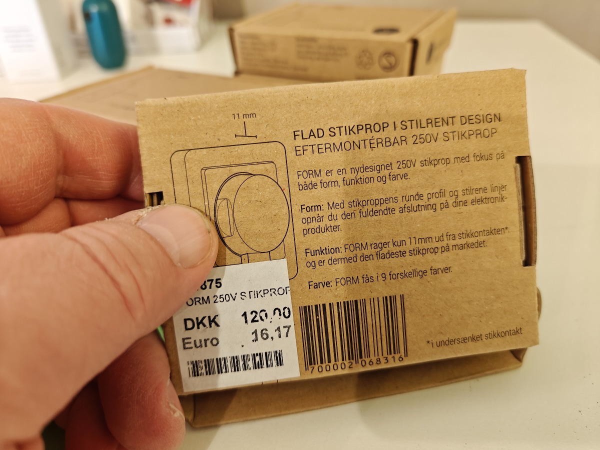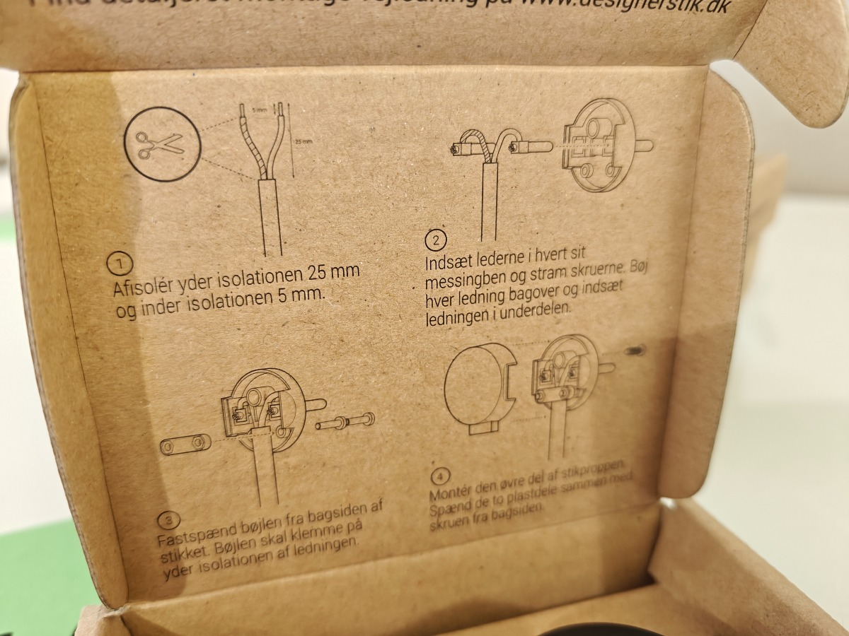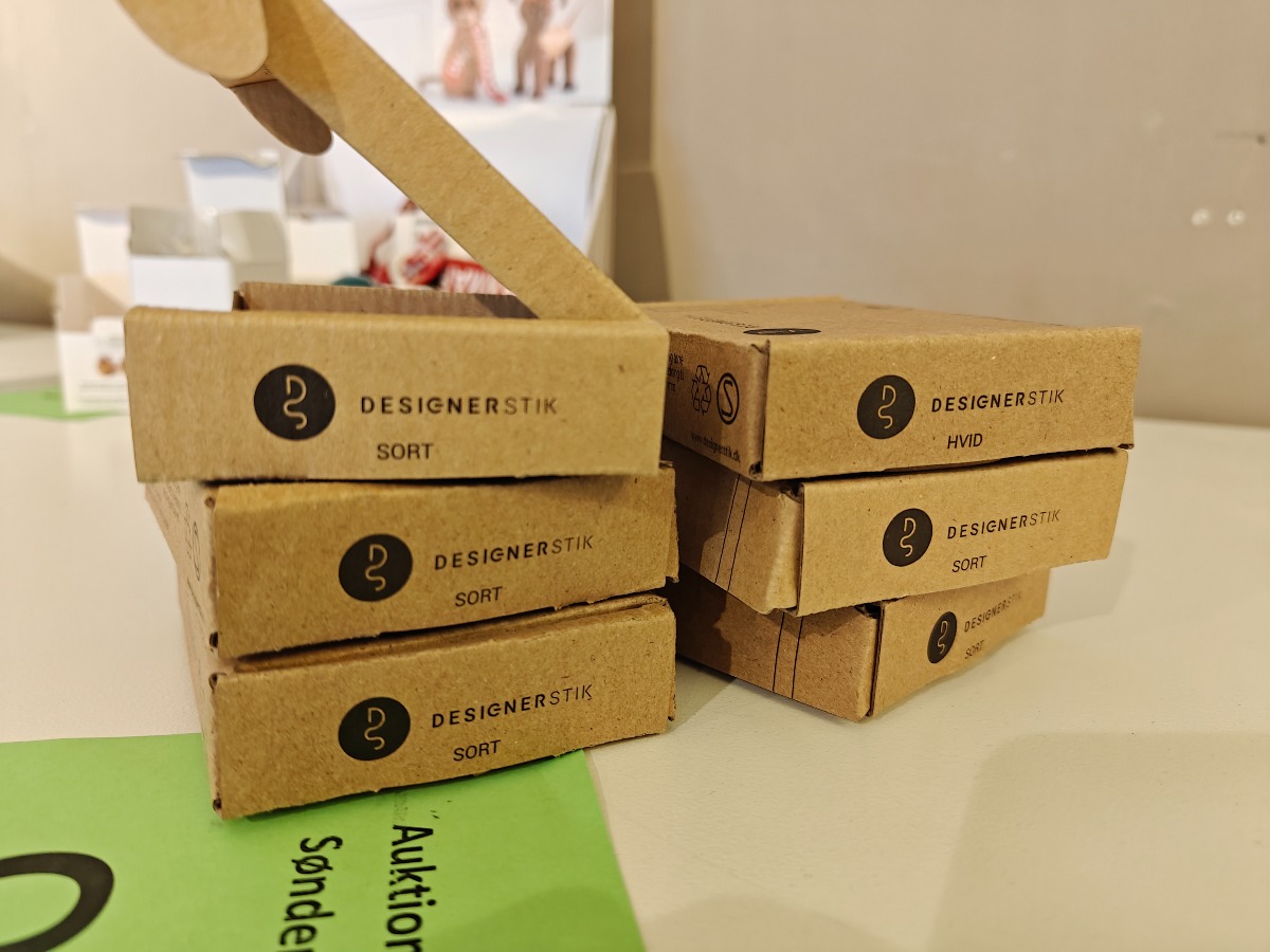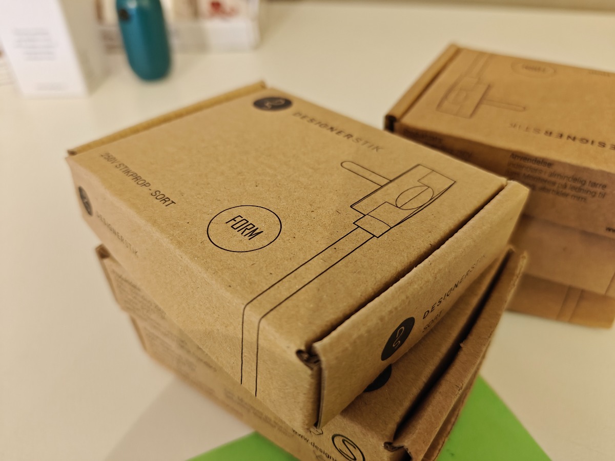 Designerstik.dk stikpropper. 5 sorte og 1 hvid.
