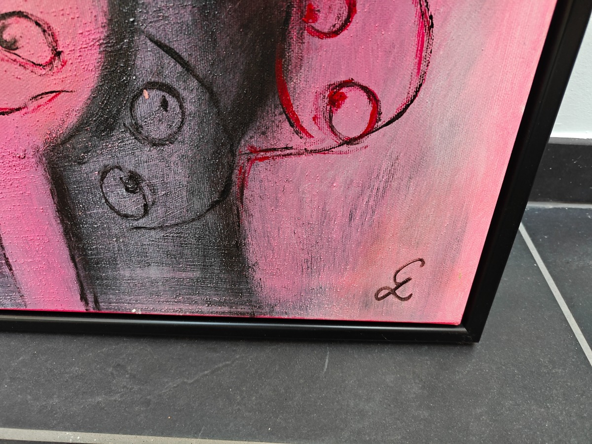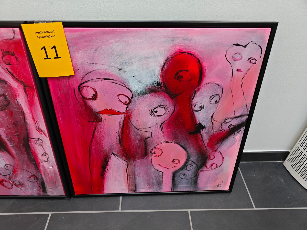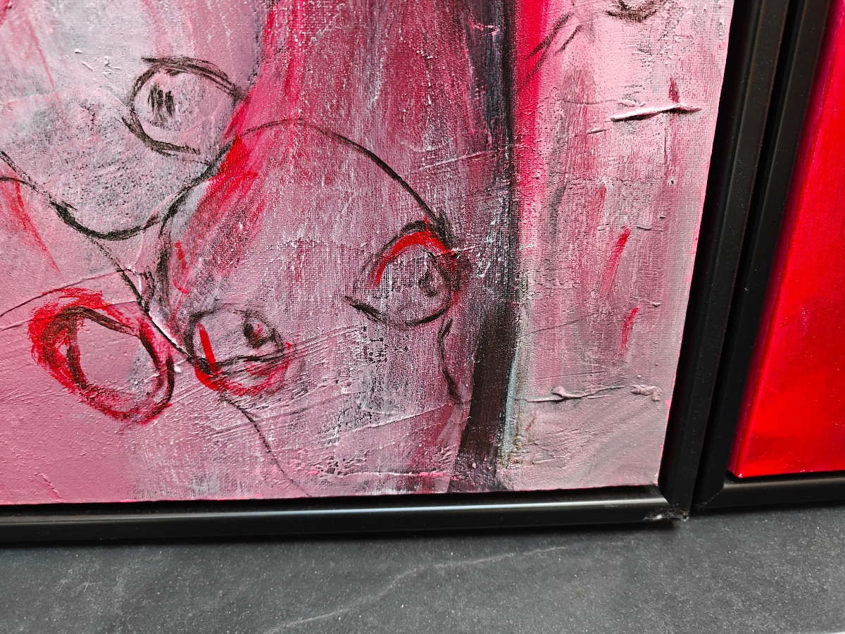 2 stk Abstrakte malerier Rose / rød / lilla nuancer måler 75 h x 75 b