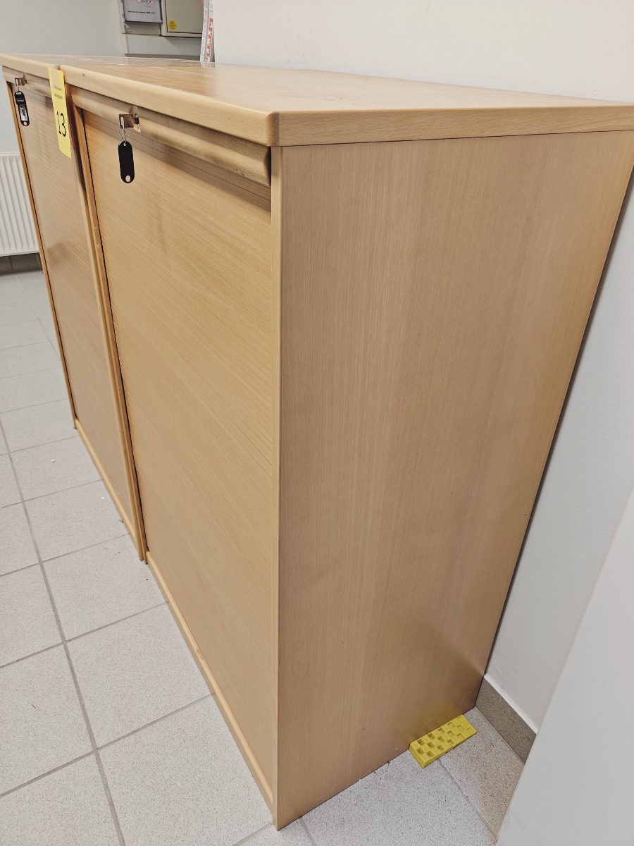 2 stk Jalousiskab / arkivskab i bøg måler h 120 x b 80 x d 50 cm med nøgler i ok stand med brugsspor