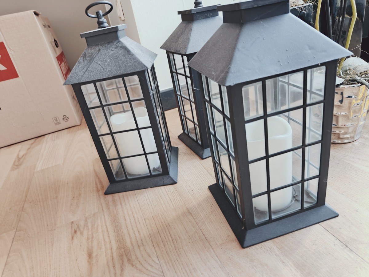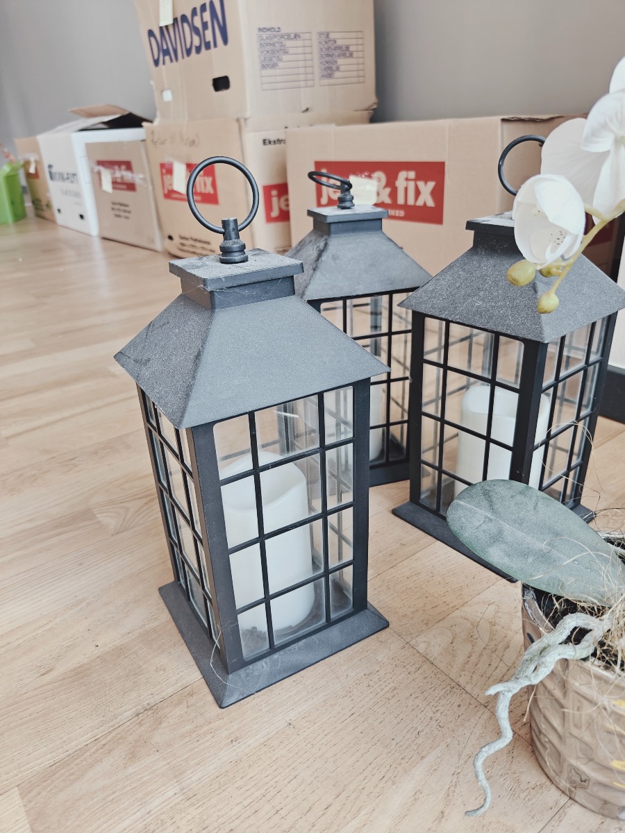 Kunstige blomster og lanterner 9 dele,  lanterne h30 cm høj. blomst h 55 cm.