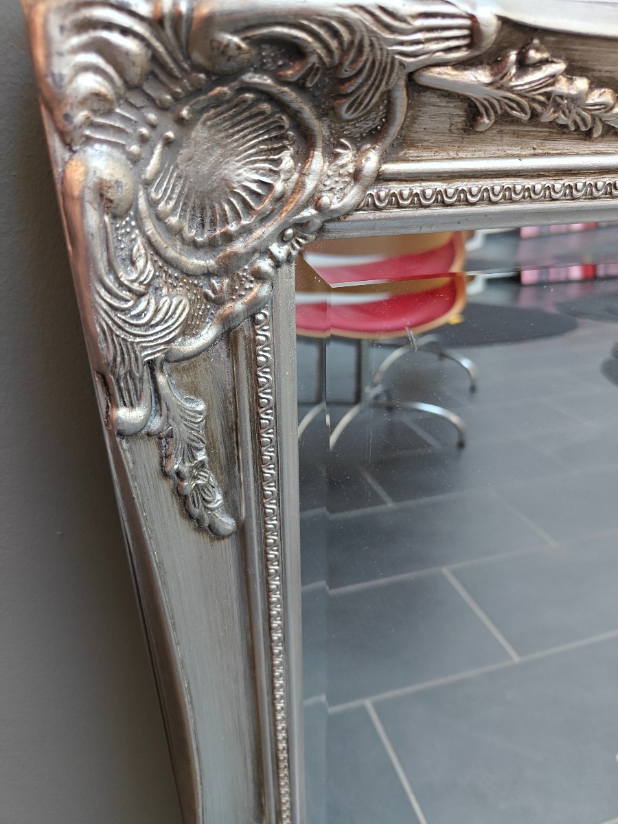 2 stk Sølv antikke spejle. Måler 90 x 70 med facetslebet glas. I ok stand, med afskalninger og brugsspor. Brugte