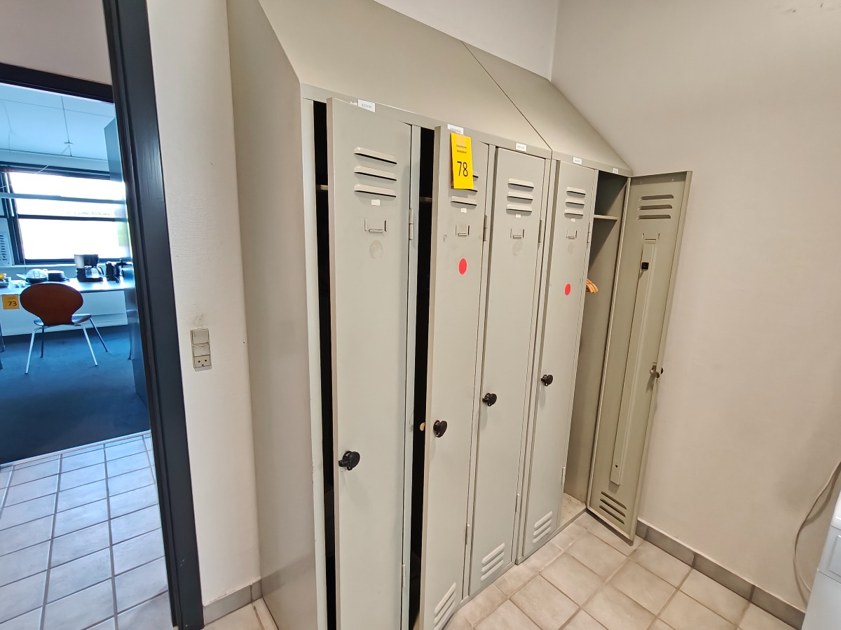 2 stk. Blikaskabe, den ene med 3 låger, den anden med 2 låger. Begge i grå. Mål: 50 x 93 cm. H: 174-220 cm. Brugt.