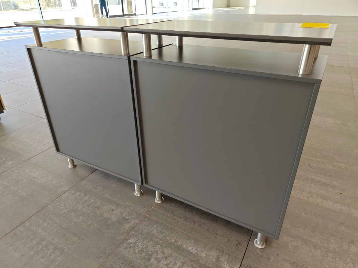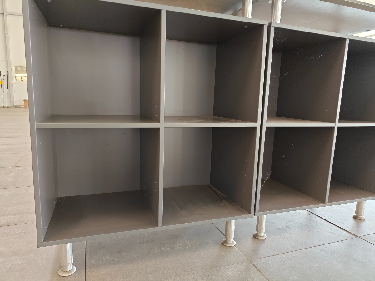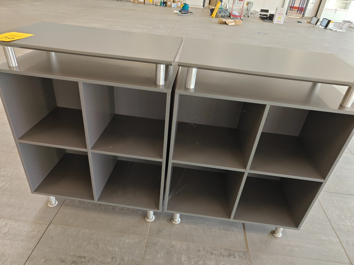 2 stk. CUBE design reoler i grå. De måler 80 x 48 cm. H: 105 cm. Brugt og med alm. brugsspor.