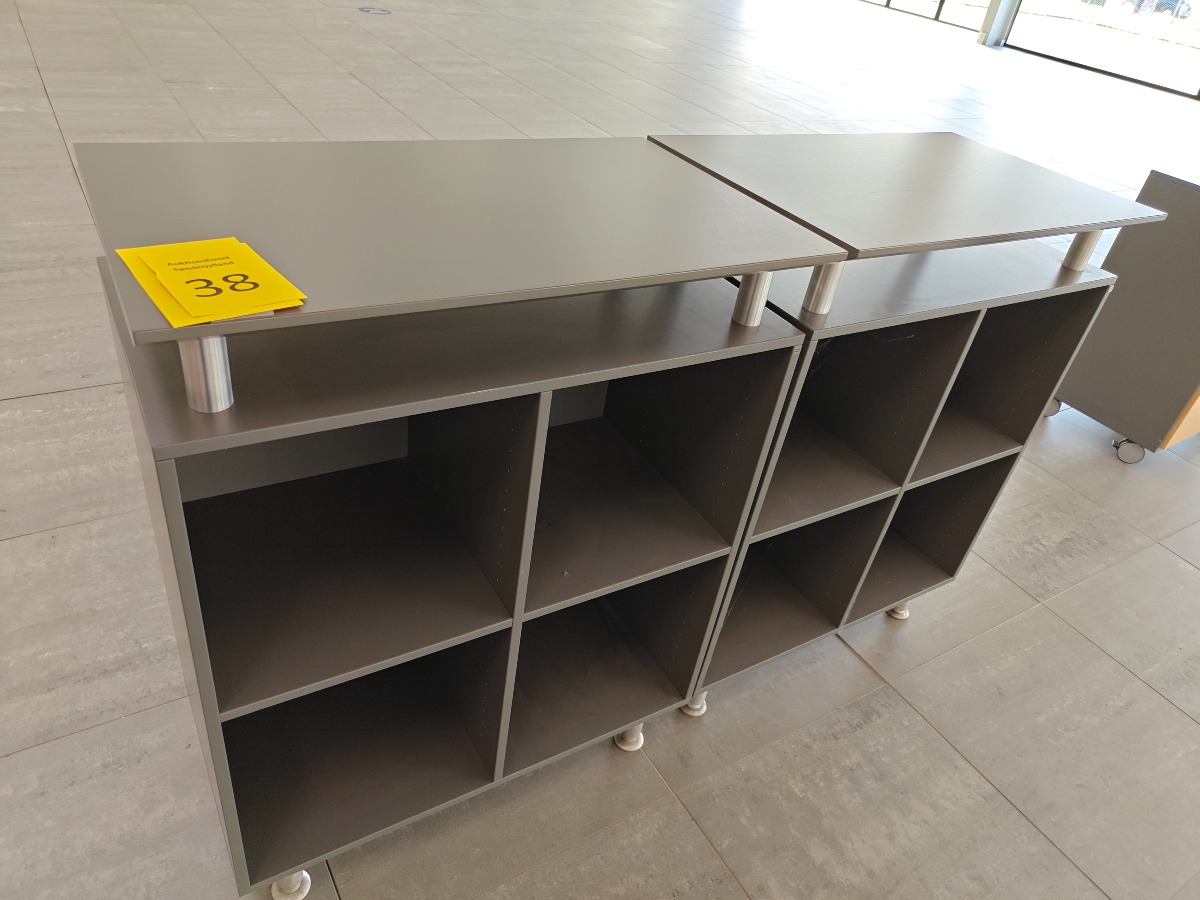 2 stk. CUBE design reoler i grå. De måler 80 x 48 cm. H: 105 cm. Brugt og med alm. brugsspor.