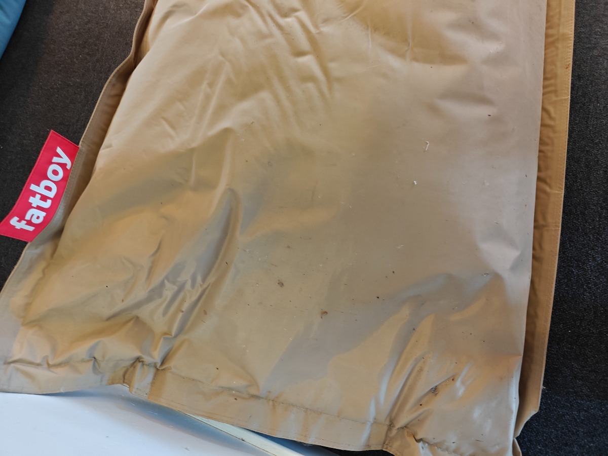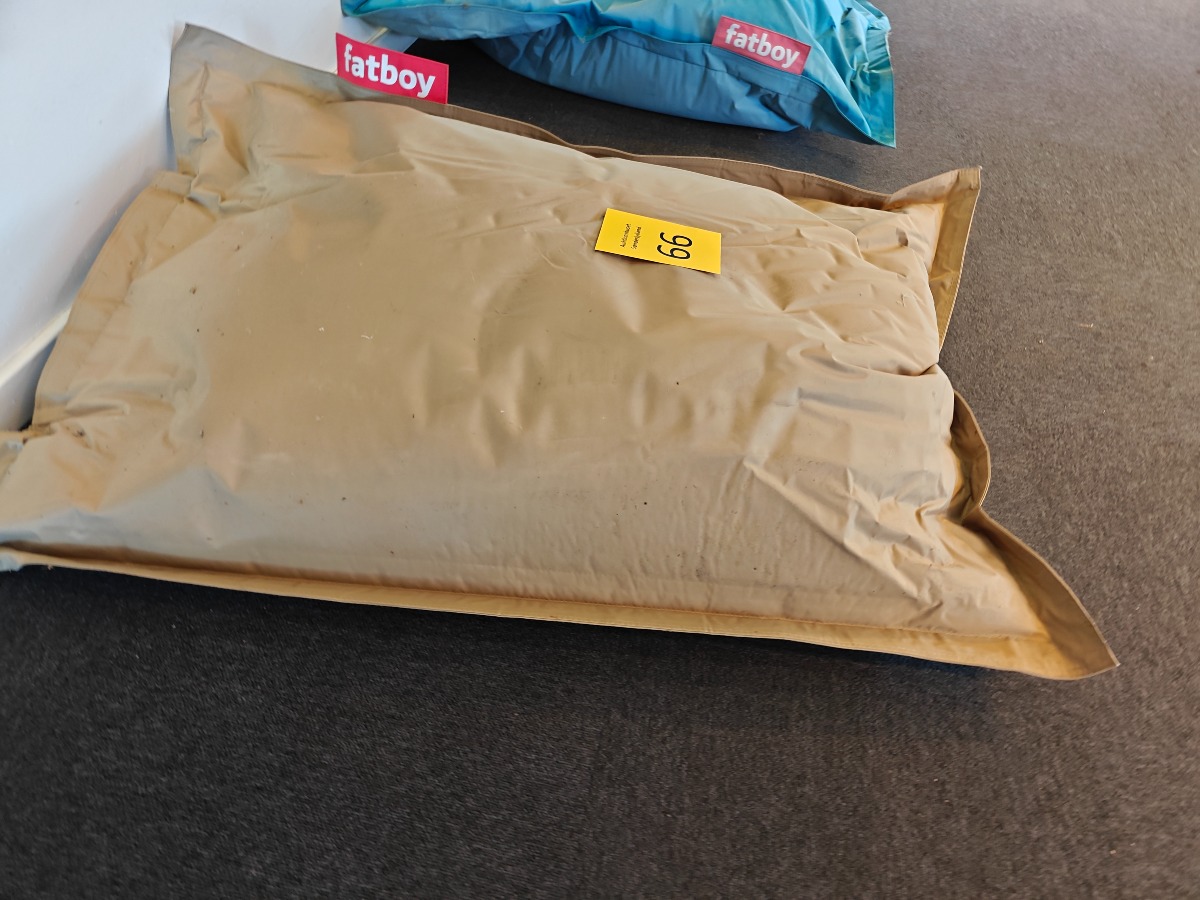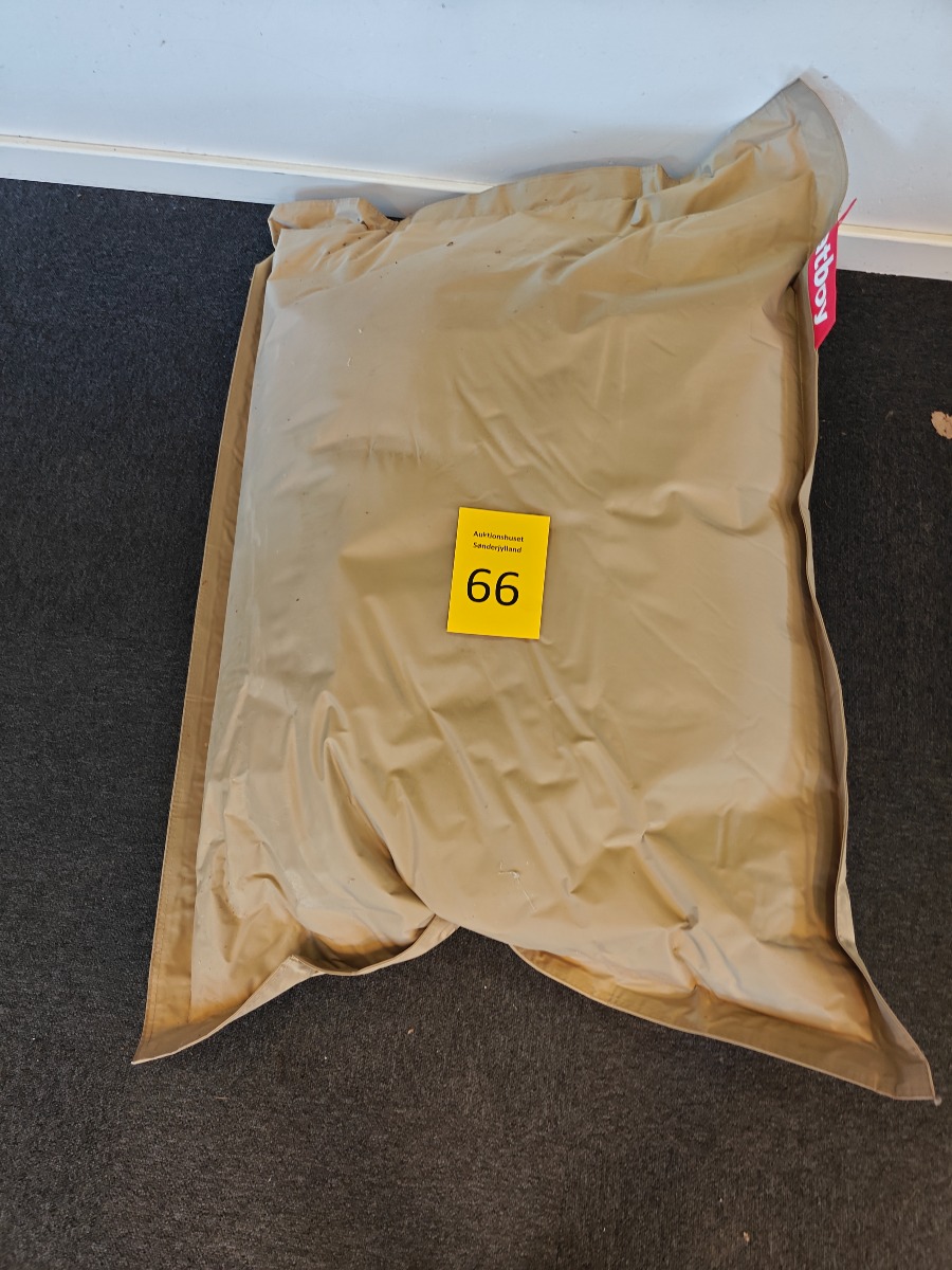 Fatboy i sandfarve, som måler 109 x 87 cm. Brugt og trænger til rengøring.