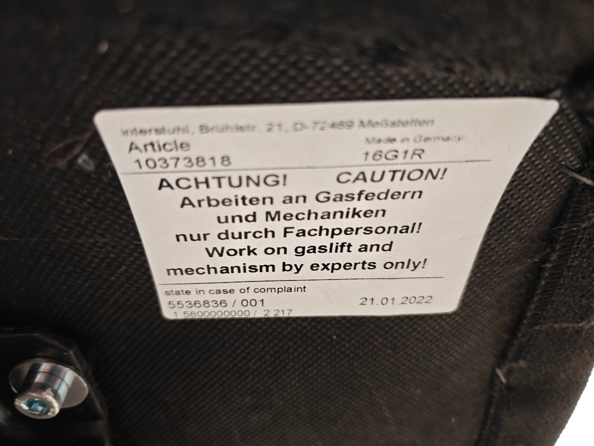 Interstuhl kontorstol. Trænger til rengøring og med alm. brugsspor.