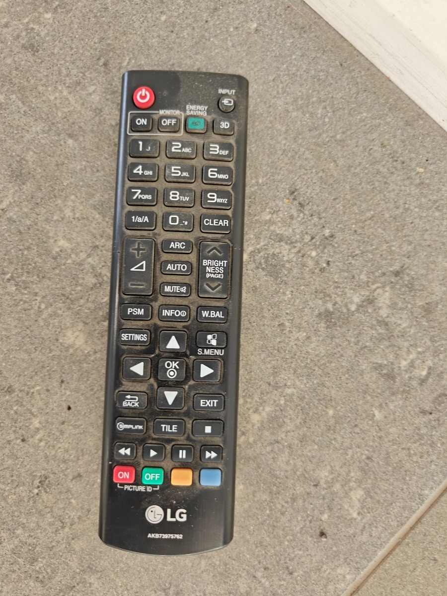 Vægthængt LG TV med fjerbetjening. Køber afmonterer selv. Det måler 71 cm i højden. Brugt.