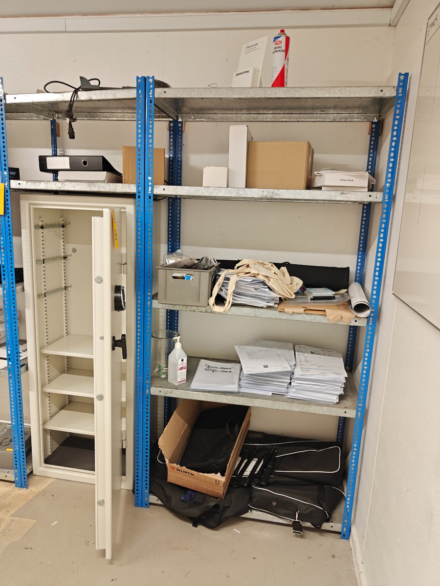 Reoler uden indhold, 6 sektioner. De måler 198 cm i højden og 100 cm i bredden. Brugt. Køber skal selv skille ad.