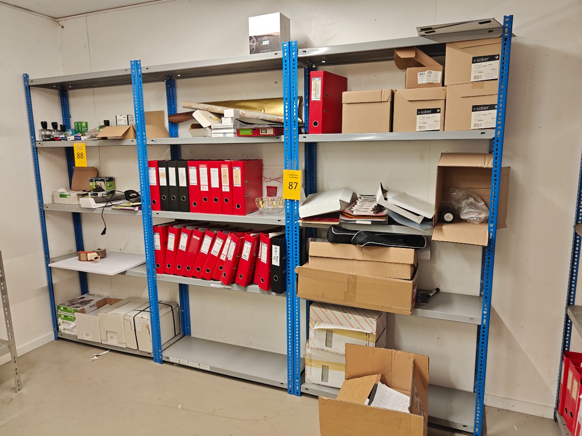 Reoler uden indhold, 3 sektioner. De måler 198 cm i højden og 100 cm i bredden og 30 cm i dybden. Brugt. Køber skal selv skille ad.